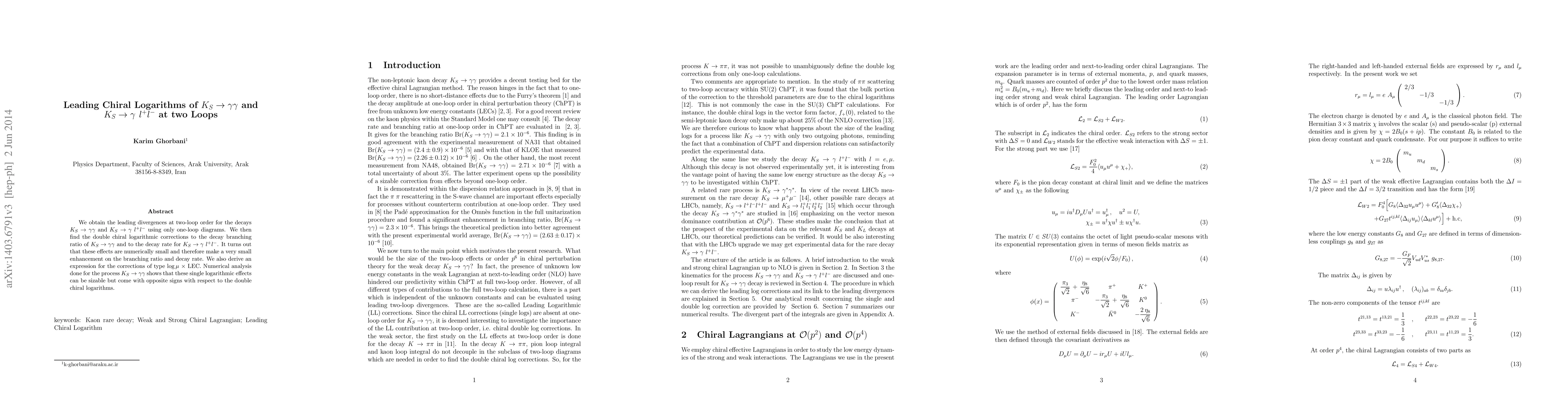 This research paper calculates leading divergences at two-loop order for K_S decays into gamma-gamma and gamma+ll^+, finding numerically small enhancements on branching ratios and decay rates.