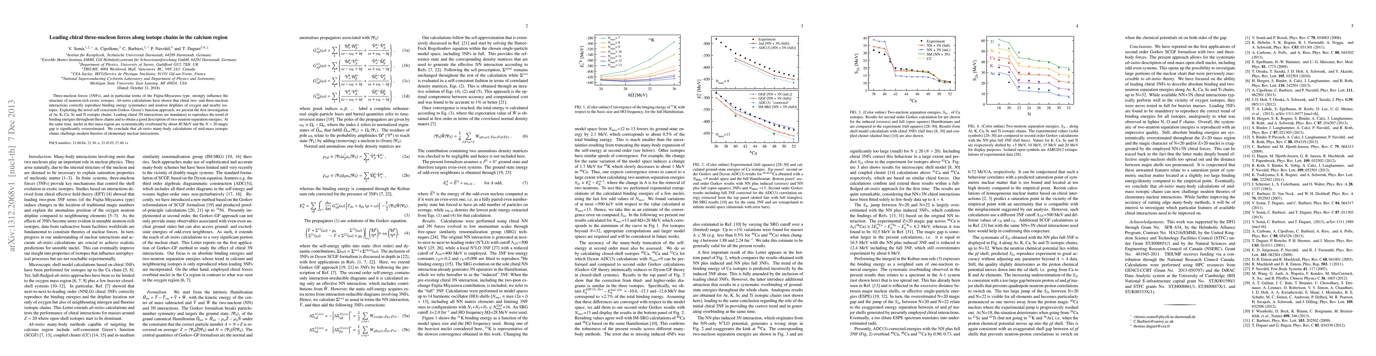 This paper investigates the influence of leading chiral three-nucleon forces (3NFs) on the binding energies of isotopes in the calcium region using a self-consistent Gorkov-Green's function approach. The study finds that 3NFs are crucial for accurately reproducing trends in binding energies and neutron separation energies across Ar, K, Ca, Sc, and Ti chains, though modern theories still overbind these nuclei by about 40 MeV.