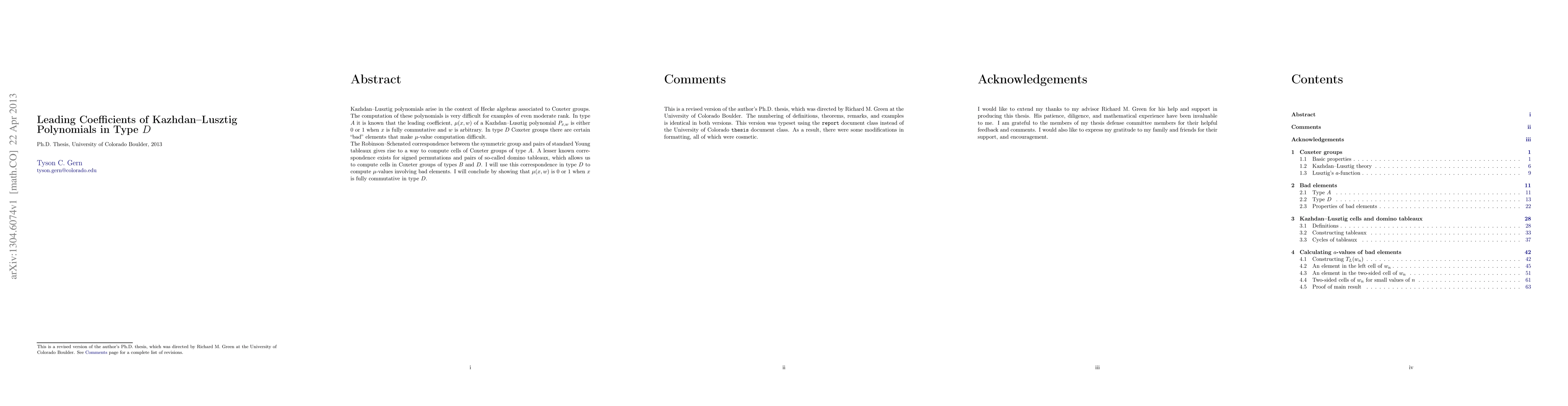 Kazhdan--Lusztig polynomials arise in the context of Hecke algebras associated to Coxeter groups. The computation of these polynomials is very difficult for examples of even moderate rank. In type $A$ it is known that the leading coefficient, $\mu(x,w)$ of a Kazhdan--Lusztig polynomial $P_{x,w}$ is either 0 or 1 when $x$ is fully commutative and $w$ is arbitrary. In type $D$ Coxeter groups there are certain "bad" elements that make $\mu$-value computation difficult. The Robinson--Schensted correspondence between the symmetric group and pairs of standard Young tableaux gives rise to a way to compute cells of Coxeter groups of type $A$. A lesser known correspondence exists for signed permutations and pairs of so-called domino tableaux, which allows us to compute cells in Coxeter groups of types $B$ and $D$. I will use this correspondence in type $D$ to compute $\mu$-values involving bad elements. I will conclude by showing that $\mu(x,w)$ is 0 or 1 when $x$ is fully commutative in type $D$.