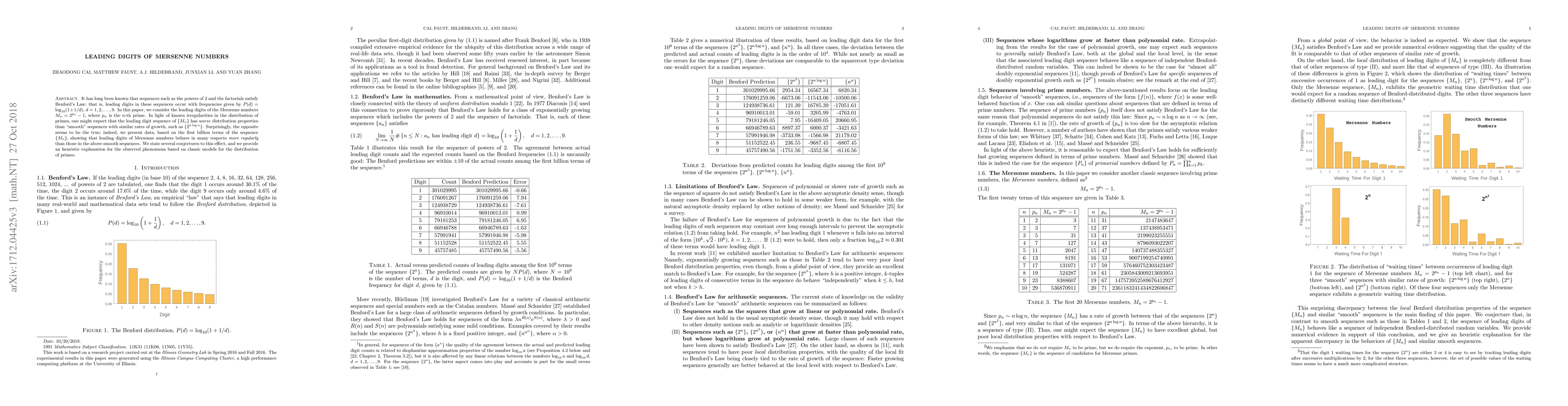 The findings provide insights into the unusual regularity of Mersenne numbers' leading digits, attributing it to the statistical irregularities in prime distribution, and offer a heuristic explanation consistent with probabilistic interpretations of Benford's Law in random processes.