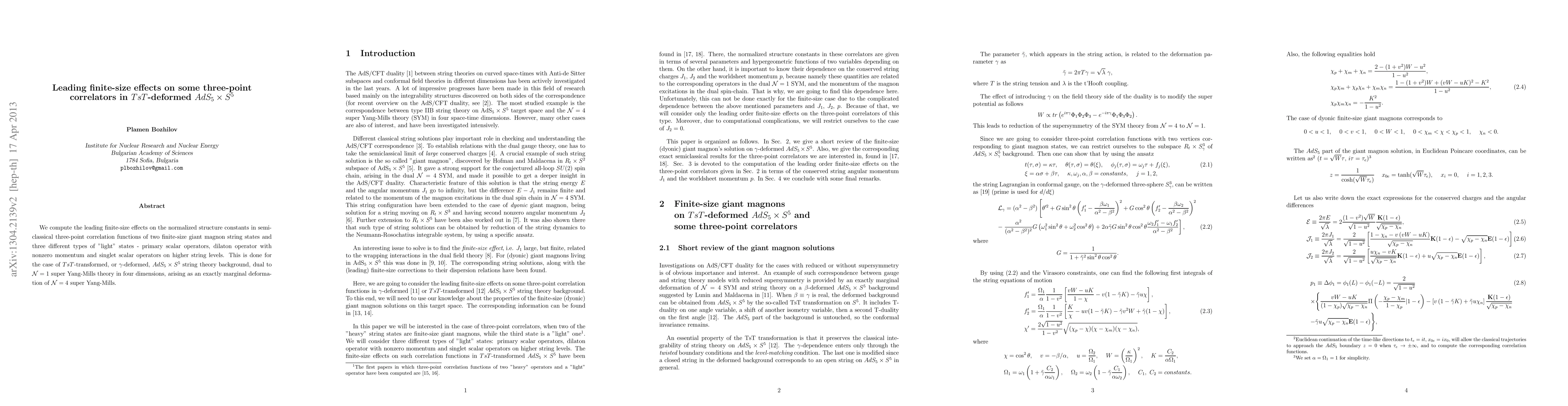 This paper calculates the leading finite-size effects on three-point correlators in TsT-deformed AdS_5 x S^5, focusing on the structure constants of three-point functions involving finite-size giant magnon string states and "light" states like scalar operators. The results pertain to the gamma-deformation of the string theory background dual to N=1 super Yang-Mills theory.