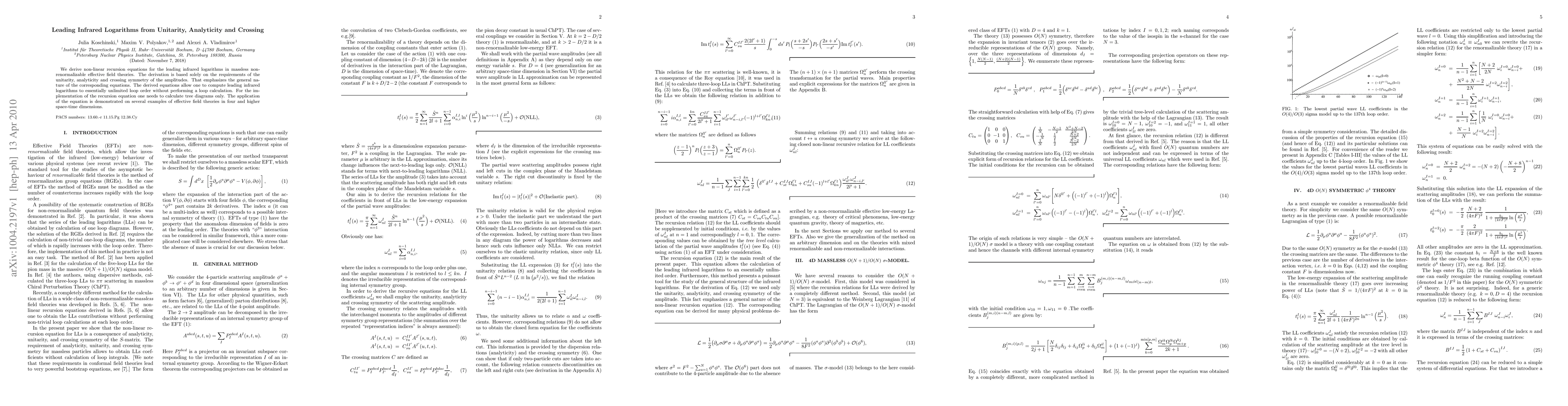 This paper derives non-linear recursion equations for leading infrared logarithms in massless non-renormalizable effective field theories based on unitarity, analyticity, and crossing symmetry. These equations enable computation of infrared logarithms to any loop order using only tree diagrams, demonstrated through examples in four and higher dimensions.
