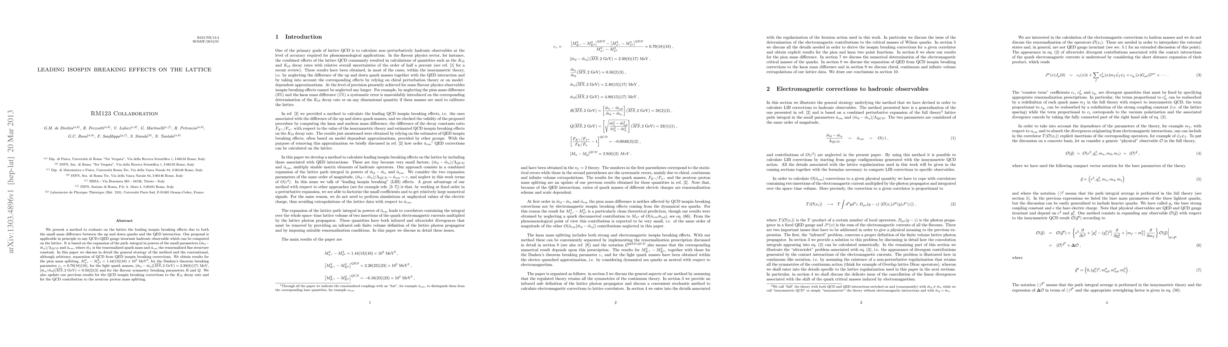 This paper proposes a method to compute leading isospin breaking effects on the lattice due to quark mass differences and QED interactions. It provides results for pion mass splitting, Dashen's theorem parameter, light quark masses, and flavour symmetry breaking parameters.