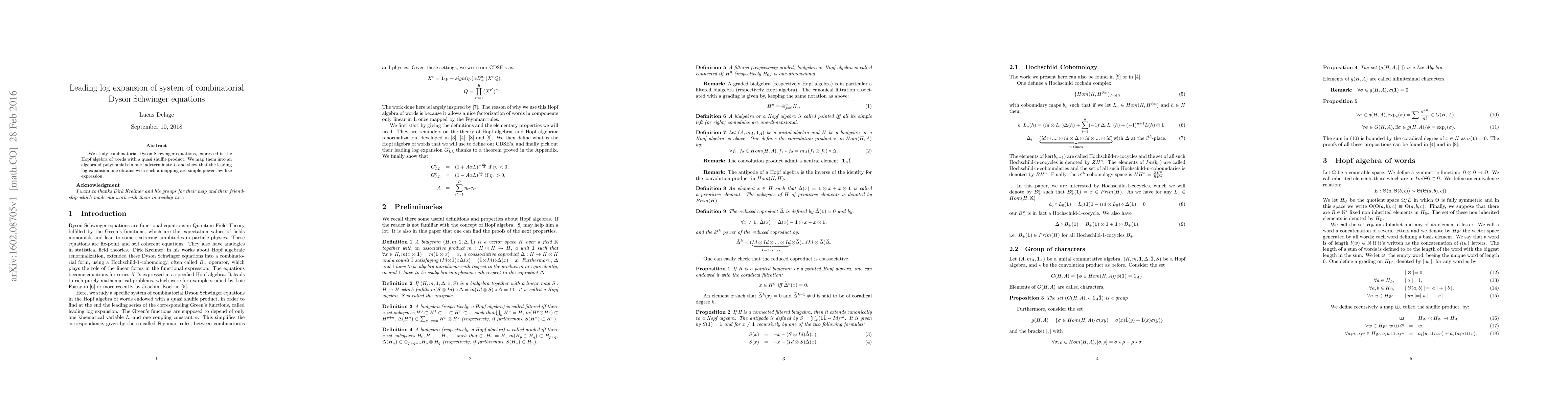 This paper explores combinatorial Dyson Schwinger equations within the framework of Hopf algebra of words, transforming them into a polynomial algebra. The leading log expansion resulting from this mapping is shown to be a straightforward power law expression.