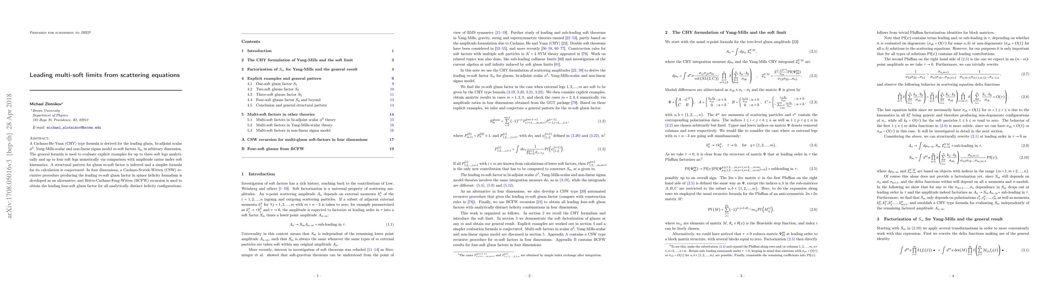 A Cachazo-He-Yuan (CHY) type formula is derived for the leading gluon, bi-adjoint scalar $\phi^3$, Yang-Mills-scalar and non-linear sigma model $m$-soft factors $S_m$ in arbitrary dimension. The general formula is used to evaluate explicit examples for up to three soft legs analytically and up to four soft legs numerically via comparison with amplitude ratios under soft kinematics. A structural pattern for gluon $m$-soft factor is inferred and a simpler formula for its calculation is conjectured. In four dimensions, a Cachazo-Svr\v{c}ek-Witten (CSW) recursive procedure producing the leading $m$-soft gluon factor in spinor helicity formalism is developed as an alternative, and Britto-Cachazo-Feng-Witten (BCFW) recursion is used to obtain the leading four-soft gluon factor for all analytically distinct helicity configurations.