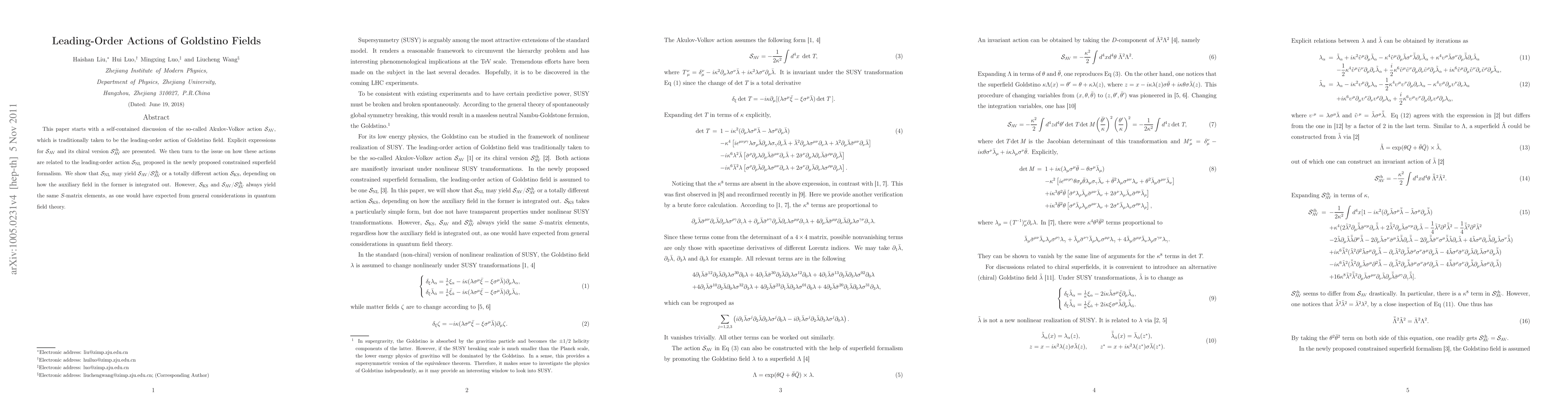 This paper starts with a self-contained discussion of the so-called Akulov-Volkov action S_AV, which is traditionally taken to be the leading-order action of Goldstino field. Explicit expressions for S_AV and its chiral version S_AV^ch are presented. We then turn to the issue on how these actions are related to the leading-order action S_NL proposed in the newly proposed constrained superfield formalism. We show that S_NL may yield S_AV/S_AV^ch or a totally different action S_KS, depending on how the auxiliary field in the former is integrated out. However, S_KS and S_AV/S_AV^ch always yield the same S-matrix elements, as one would have expected from general considerations in quantum field theory.