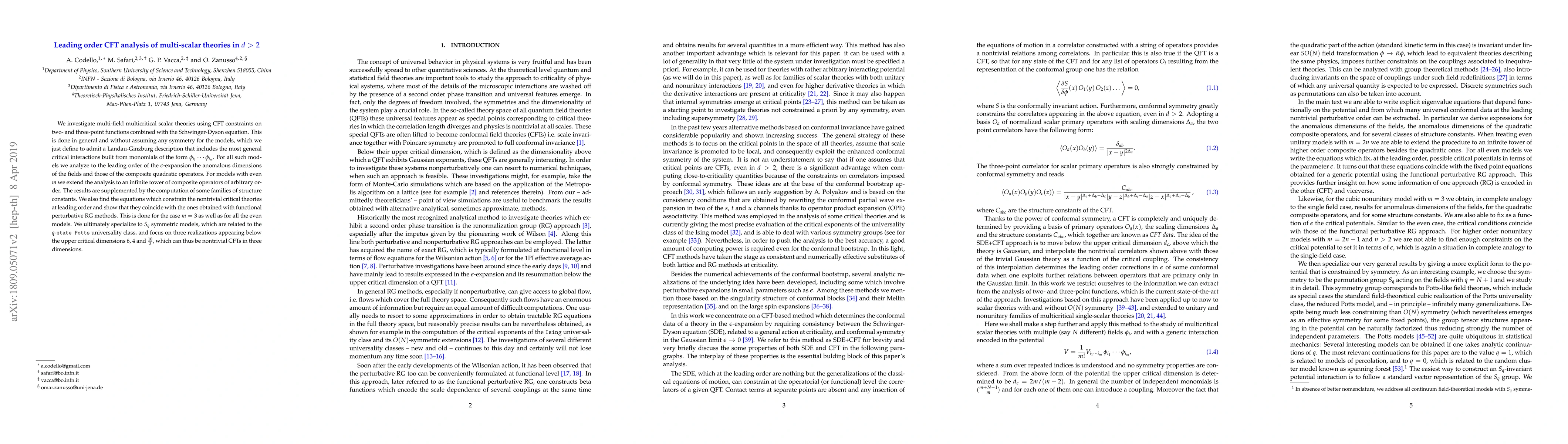 We investigate multi-field multicritical scalar theories using CFT constraints on two- and three-point functions combined with the Schwinger-Dyson equation. This is done in general and without assuming any symmetry for the models, which we just define to admit a Landau-Ginzburg description that includes the most general critical interactions built from monomials of the form $\phi_{i_1} \cdots \phi_{i_m}$. For all such models we analyze to the leading order of the $\epsilon$-expansion the anomalous dimensions of the fields and those of the composite quadratic operators. For models with even $m$ we extend the analysis to an infinite tower of composite operators of arbitrary order. The results are supplemented by the computation of some families of structure constants. We also find the equations which constrain the nontrivial critical theories at leading order and show that they coincide with the ones obtained with functional perturbative RG methods. This is done for the case $m=3$ as well as for all the even models. We ultimately specialize to $S_q$ symmetric models, which are related to the $q$-state Potts universality class, and focus on three realizations appearing below the upper critical dimensions $6$, $4$ and $\frac{10}{3}$, which can thus be nontrivial CFTs in three dimensions.