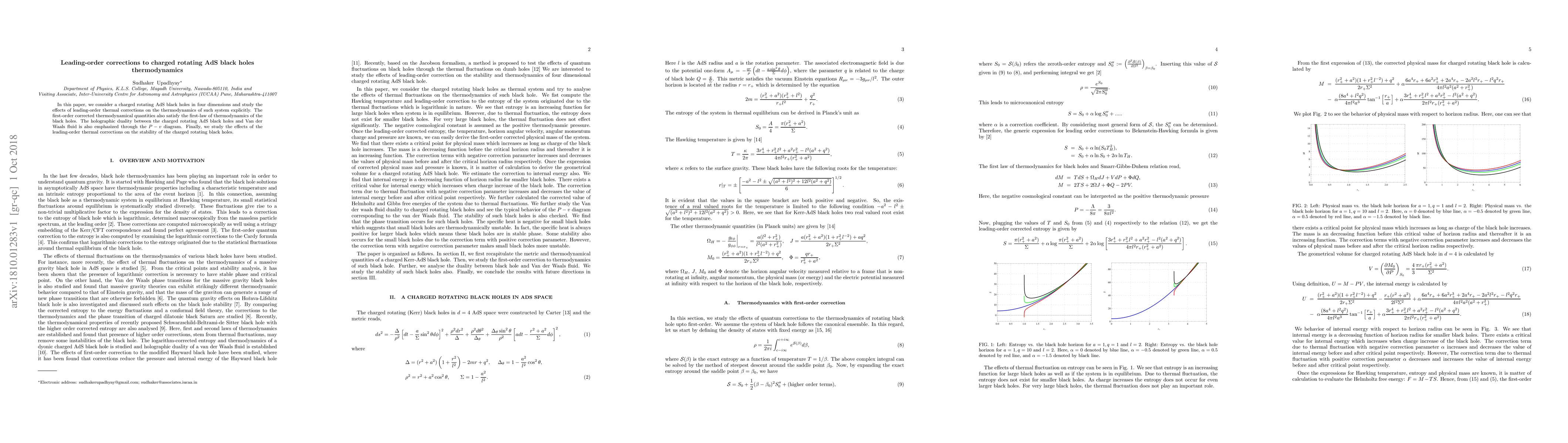 This paper investigates leading-order thermal corrections in the thermodynamics of charged rotating AdS black holes in four dimensions, confirming that these corrections maintain the first-law of thermodynamics and exploring the holographic duality with Van der Waals fluids, while also examining their impact on black hole stability.