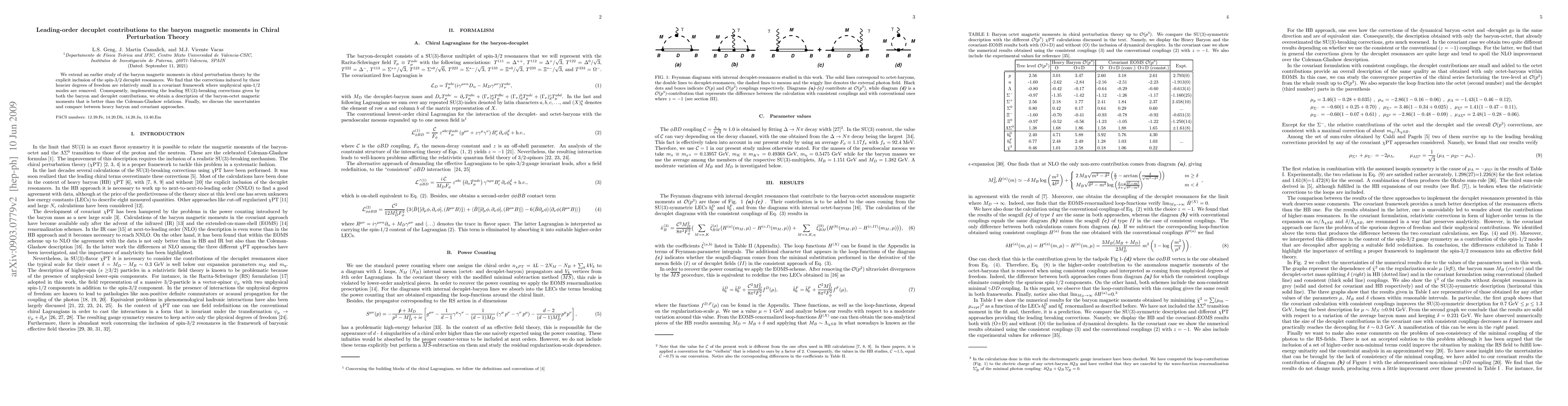 This research extends chiral perturbation theory to include spin-3/2 decuplet resonances, finding that their contributions are minor, allowing for an improved description of baryon-octet magnetic moments over the Coleman-Glashow relations. The study also discusses uncertainties and compares heavy baryon and covariant approaches.