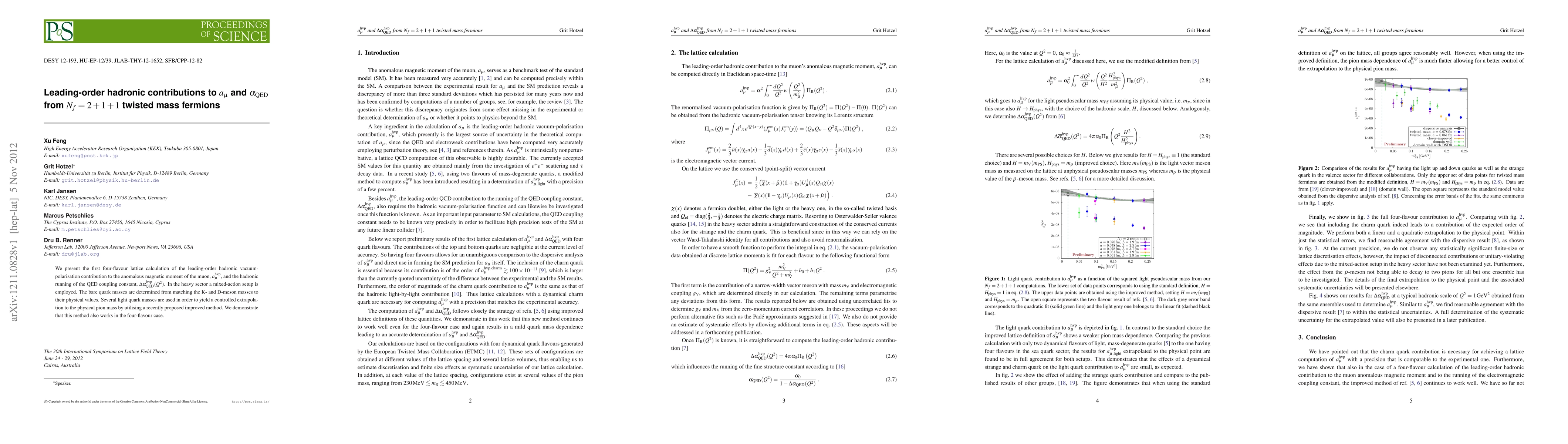 We present the first four-flavour lattice calculation of the leading-order hadronic vacuum-polarisation contribution to the anomalous magnetic moment of the muon, a_{\mu}^{hvp}, and the hadronic running of the QED coupling constant, \Delta \alpha_{QED}^{hvp} (Q^2). In the heavy sector a mixed-action setup is employed. The bare quark masses are determined from matching the K- and D-meson masses to their physical values. Several light quark masses are used in order to yield a controlled extrapolation to the physical pion mass by utilising a recently proposed improved method. We demonstrate that this method also works in the four-flavour case.
