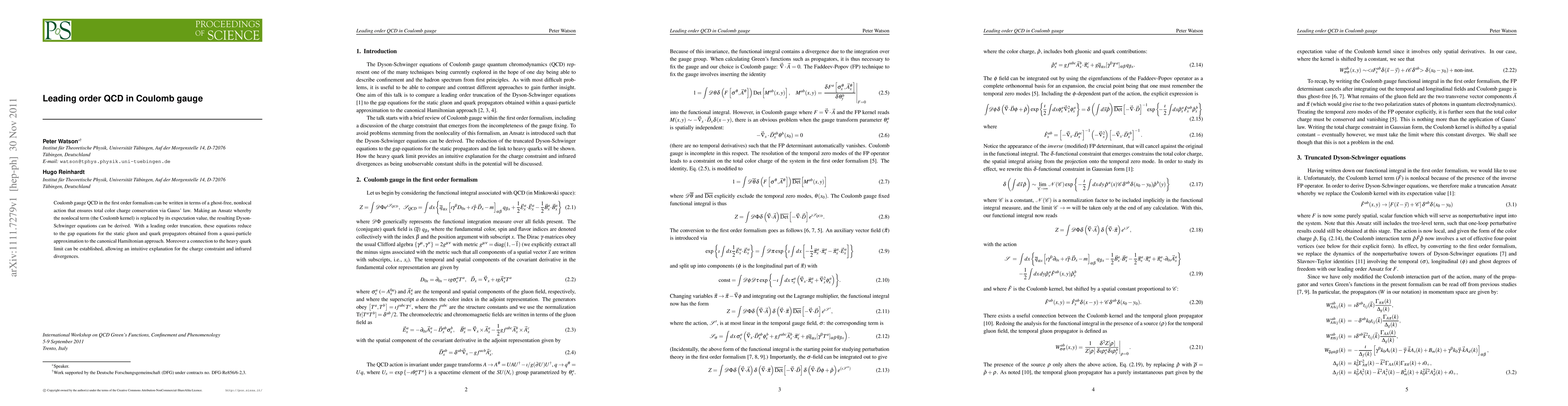 Coulomb gauge QCD in the first order formalism can be written in terms of a ghost-free, nonlocal action that ensures total color charge conservation via Gauss' law. Making an Ansatz whereby the nonlocal term (the Coulomb kernel) is replaced by its expectation value, the resulting Dyson-Schwinger equations can be derived. With a leading order truncation, these equations reduce to the gap equations for the static gluon and quark propagators obtained from a quasi-particle approximation to the canonical Hamiltonian approach. Moreover a connection to the heavy quark limit can be established, allowing an intuitive explanation for the charge constraint and infrared divergences.