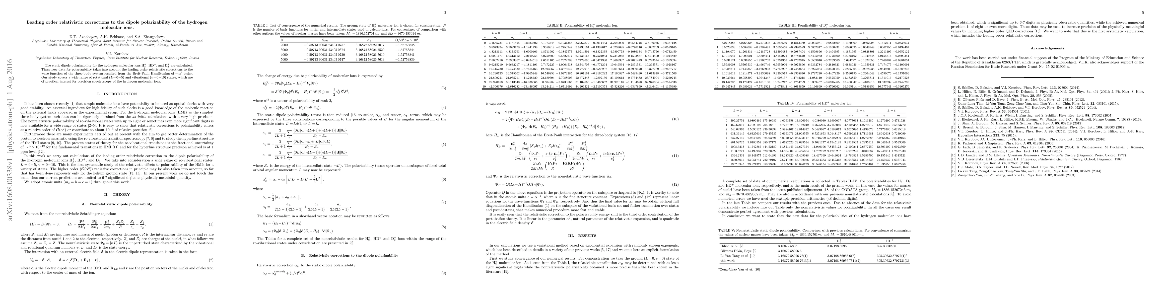 The paper presents a detailed calculation of relativistic corrections to the dipole polarizability of hydrogen molecular ions, employing the Breit-Pauli Hamiltonian and a sophisticated variational method.