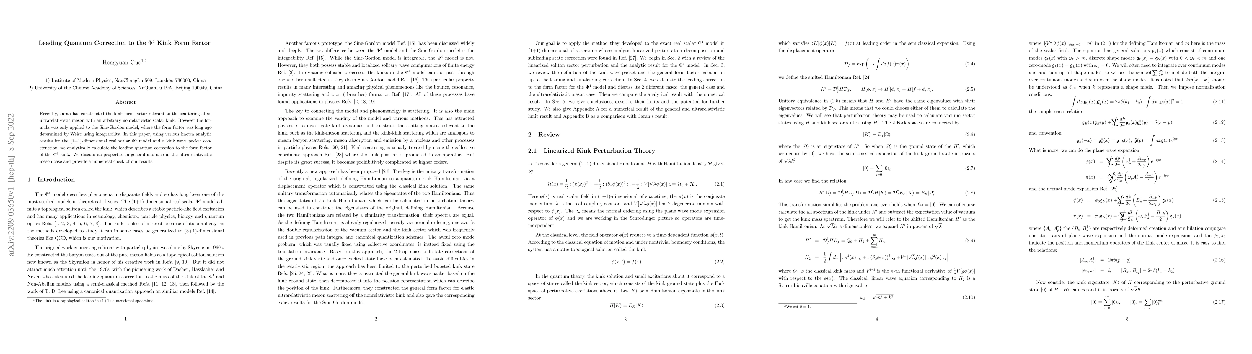 This paper calculates the leading quantum correction to the $\Phi^4$ kink form factor using analytic methods and a kink wave packet construction. The results are compared with the ultra-relativistic meson scattering scenario, and numerical checks validate the findings.