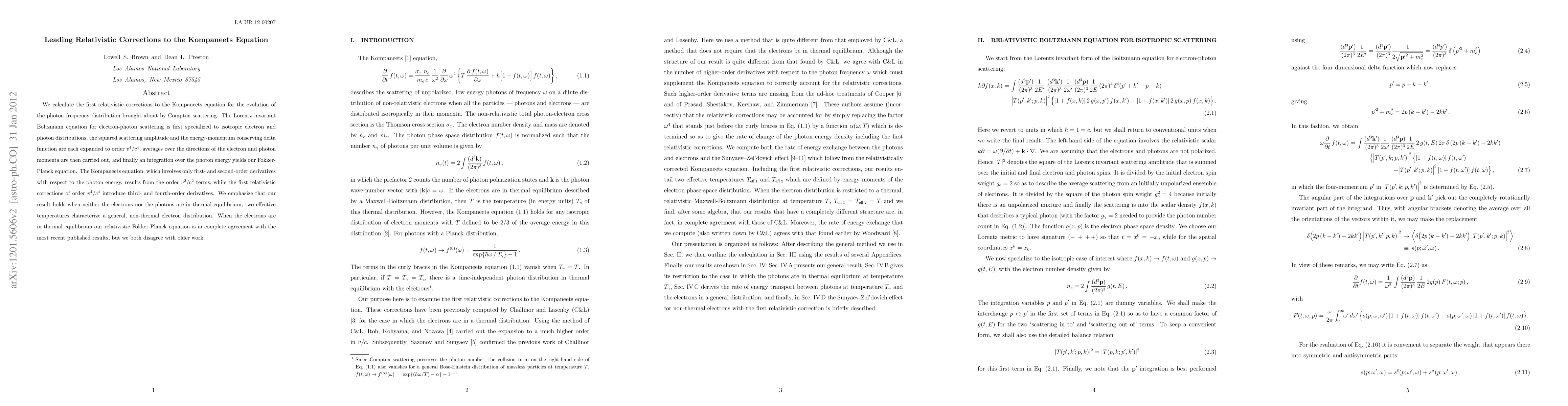 The research calculates the first relativistic corrections to the Kompaneets equation for the evolution of photon frequency distribution via Compton scattering. It specializes the Lorentz invariant Boltzmann equation for electron-photon scattering to isotropic distributions, expands squared scattering amplitude and delta function to specific orders, averages over electron and photon momenta, and integrates over photon energy to derive a Fokker-Planck equation.