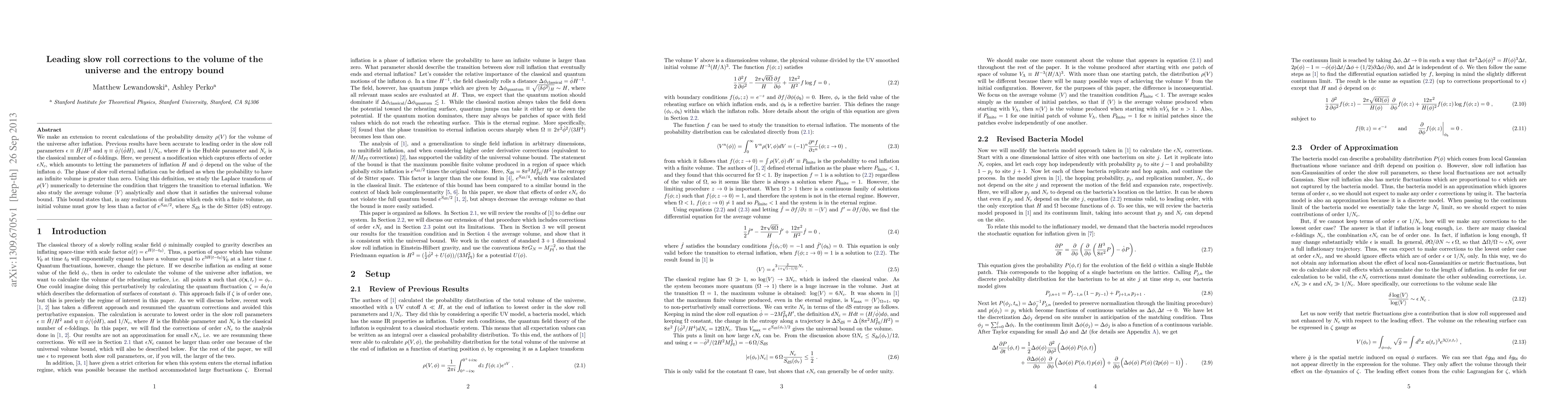 This paper refines calculations of the probability density for the universe's post-inflation volume, incorporating leading slow roll corrections. It determines the conditions for eternal inflation and analytically verifies the universal volume bound, which relates the initial volume to the de Sitter entropy.