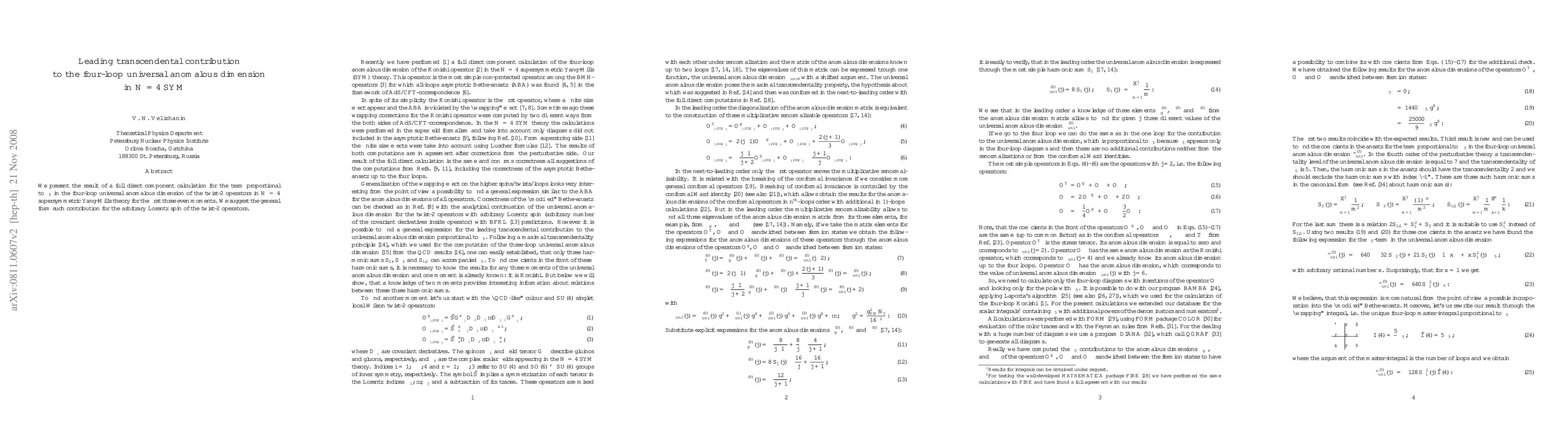 We present the result of a full direct component calculation for the term proportional to zeta(5) in the four-loop universal anomalous dimension of the twist-2 operators in N =4 supersymmetric Yang-Mills theory for the first three even moments. We suggest the general form such contribution for the arbitrary Lorentz spin of the twist-2 operators.