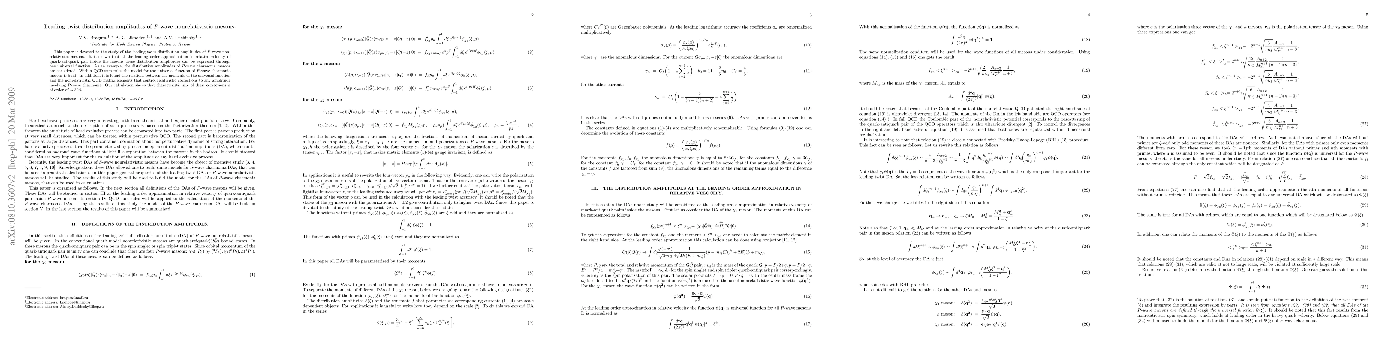 This paper investigates the leading twist distribution amplitudes of P-wave nonrelativistic mesons, demonstrating that these can be expressed through a universal function at leading order. It constructs a model for P-wave charmonia mesons using QCD sum rules and finds that relativistic corrections to these amplitudes are approximately 30%.