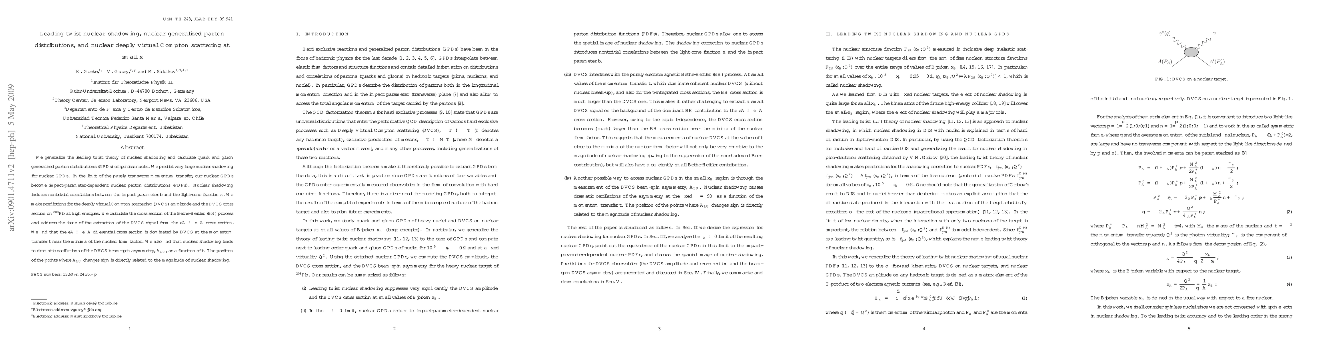 This paper generalizes the theory of leading twist nuclear shadowing to calculate quark and gluon generalized parton distributions for spinless nuclei, predicting significant nuclear shadowing effects. It also predicts dramatic oscillations in the deeply virtual Compton scattering beam-spin asymmetry due to nuclear shadowing, with the position of sign changes linked to the degree of shadowing.