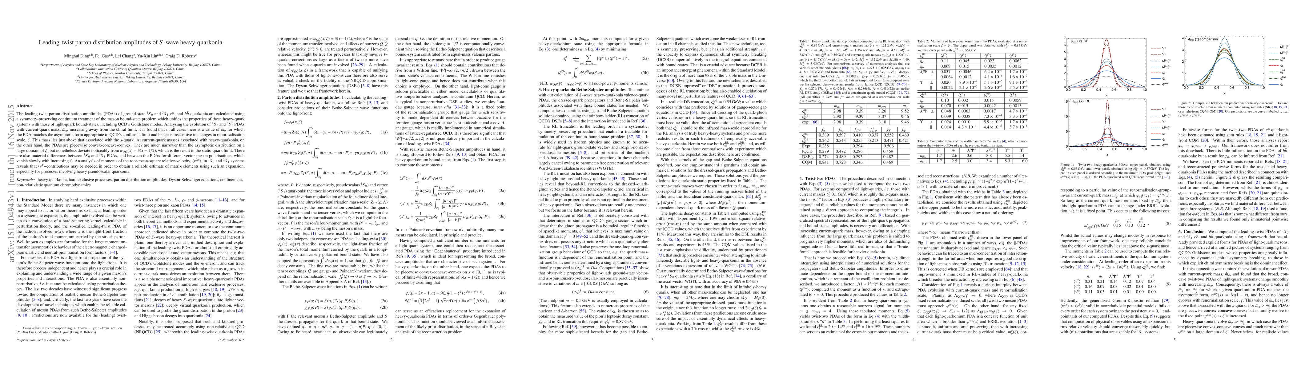 The leading-twist parton distribution amplitudes (PDAs) of ground-state $^1S_0$ and $^3S_1$ $c\bar c$- and $b\bar b$-quarkonia are calculated using a symmetry-preserving continuum treatment of the meson bound-state problem which unifies the properties of these heavy-quark systems with those of light-quark bound-states, including QCD's Goldstone modes. Analysing the evolution of $^1S_0$ and $^3S_1$ PDAs with current-quark mass, $\hat m_q$, increasing away from the chiral limit, it is found that in all cases there is a value of $\hat m_q$ for which the PDA matches the asymptotic form appropriate to QCD's conformal limit and hence is insensitive to changes in renormalisation scale, $\zeta$. This mass lies just above that associated with the $s$-quark. At current-quark masses associated with heavy-quarkonia, on the other hand, the PDAs are piecewise convex-concave-convex. They are much narrower than the asymptotic distribution on a large domain of $\zeta$; but nonetheless deviate noticeably from $\varphi_{Q\bar Q}(x) = \delta(x-1/2)$, which is the result in the static-quark limit. There are also material differences between $^1S_0$ and $^3S_1$ PDAs, and between the PDAs for different vector-meson polarisations, which vanish slowly with increasing $\zeta$. An analysis of moments of the root-mean-square relative-velocity, $\langle v^{2m}\rangle$, in $^1S_0$ and $^3S_1$ systems reveals that $\langle v^4\rangle$-contributions may be needed in order to obtain a reliable estimate of matrix elements using such an expansion, especially for processes involving heavy pseudoscalar quarkonia.
