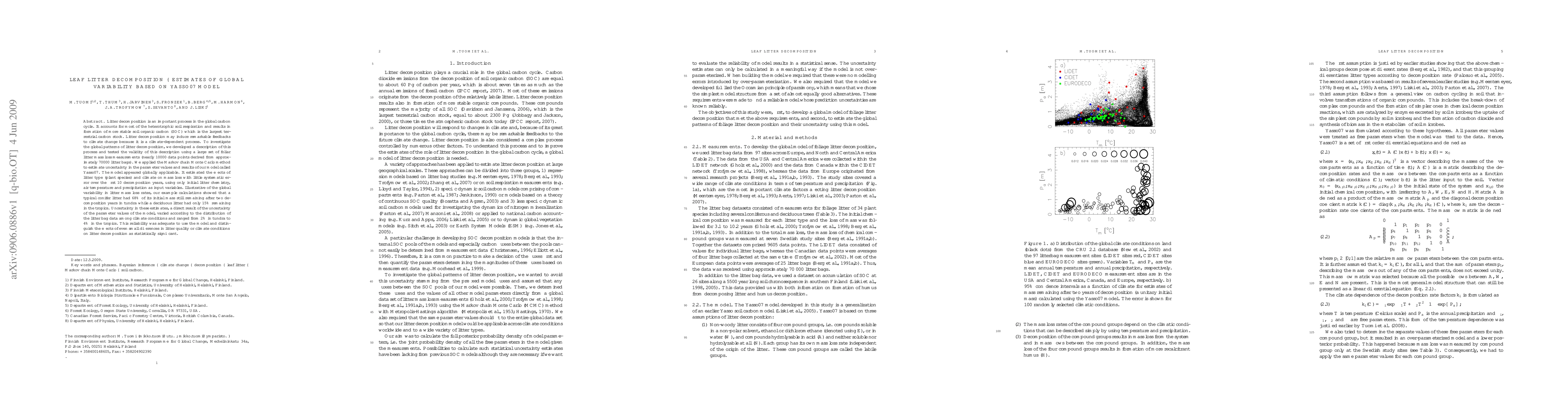 This paper develops the Yasso07 model to estimate global variability in leaf litter decomposition, showing its applicability across diverse climates and litter types. The model, validated with nearly 10,000 data points, estimates the effects of litter chemistry, temperature, and precipitation on mass loss, demonstrating significant differences in decomposition rates between conifers in tundra and deciduous litter in the tropics.