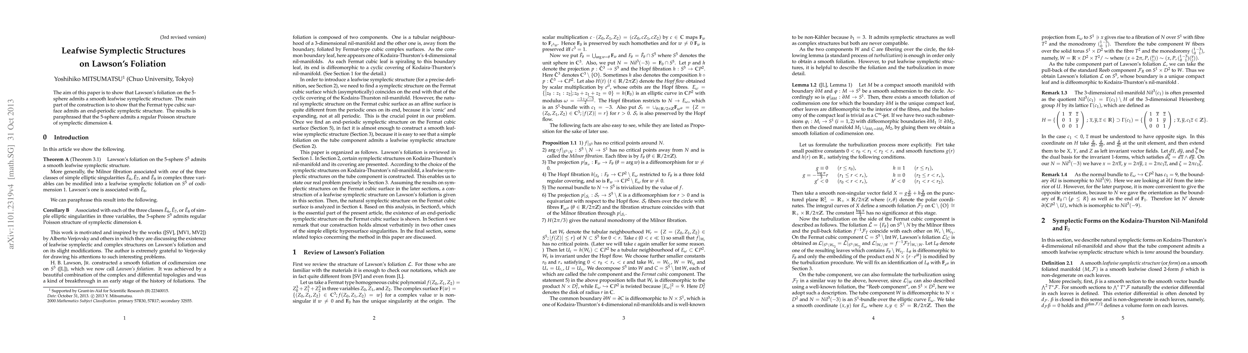 This paper demonstrates that Lawson's foliation on the 5-sphere can be endowed with a smooth leafwise symplectic structure, with a key component being the construction of an end-periodic symplectic structure on the Fermat type cubic surface.