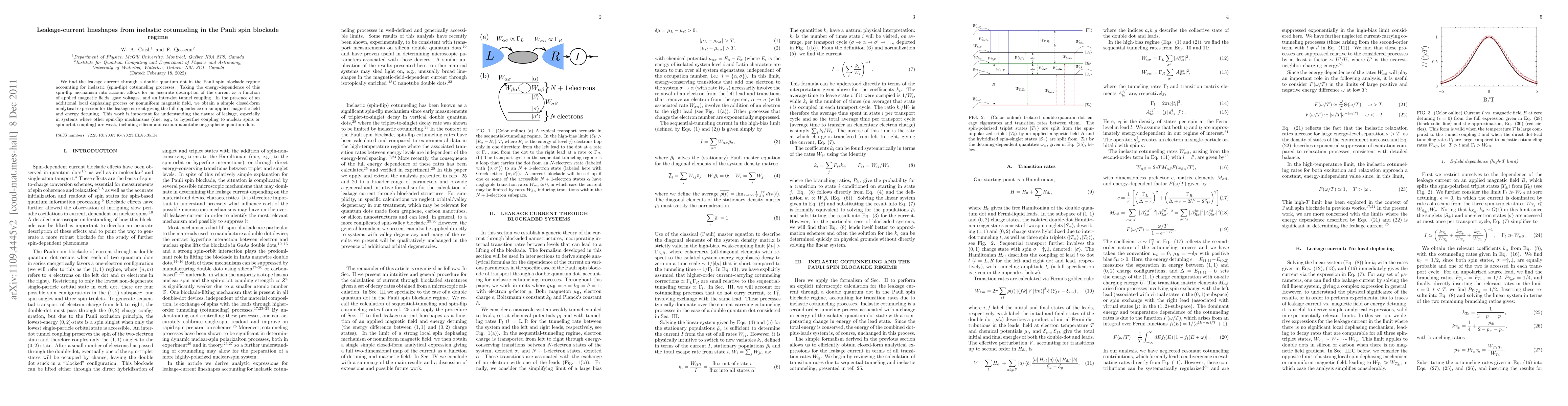 This paper investigates leakage current through a double quantum dot in the Pauli spin blockade regime, focusing on inelastic cotunneling processes. It provides an analytical expression for leakage current, accounting for spin-flip mechanisms and magnetic field effects, which is crucial for understanding leakage in quantum dots where other spin-flip mechanisms are weak.