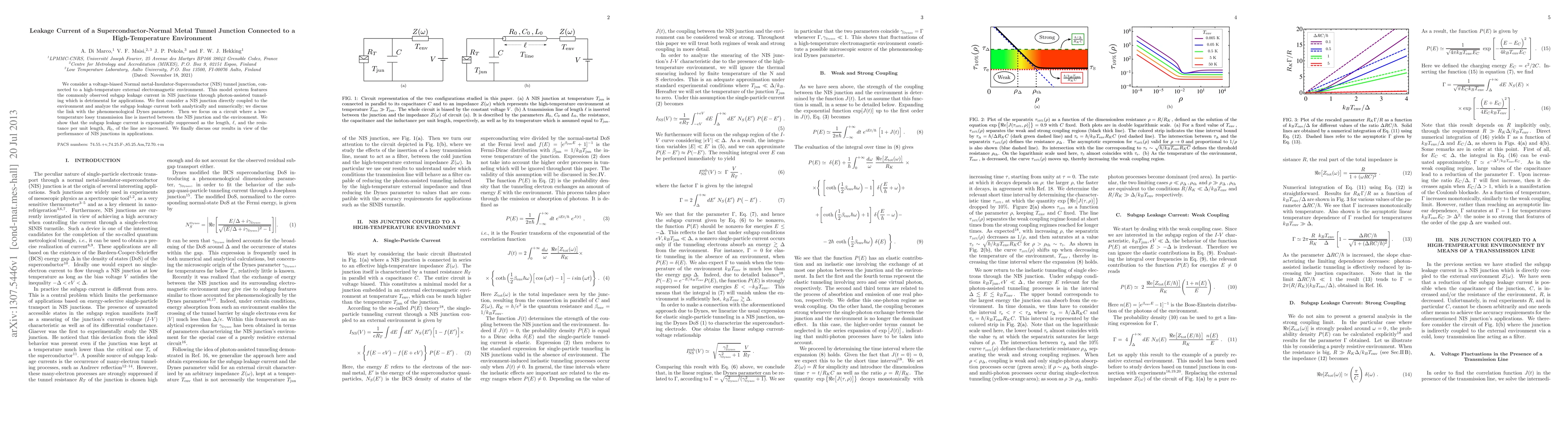This paper investigates the subgap leakage current in a voltage-biased NIS tunnel junction exposed to a high-temperature environment, demonstrating its suppression through photon-assisted tunneling. It also introduces a low-temperature lossy transmission line between the junction and the environment, showing that increasing the line's length and resistance per unit length exponentially reduces the leakage current.