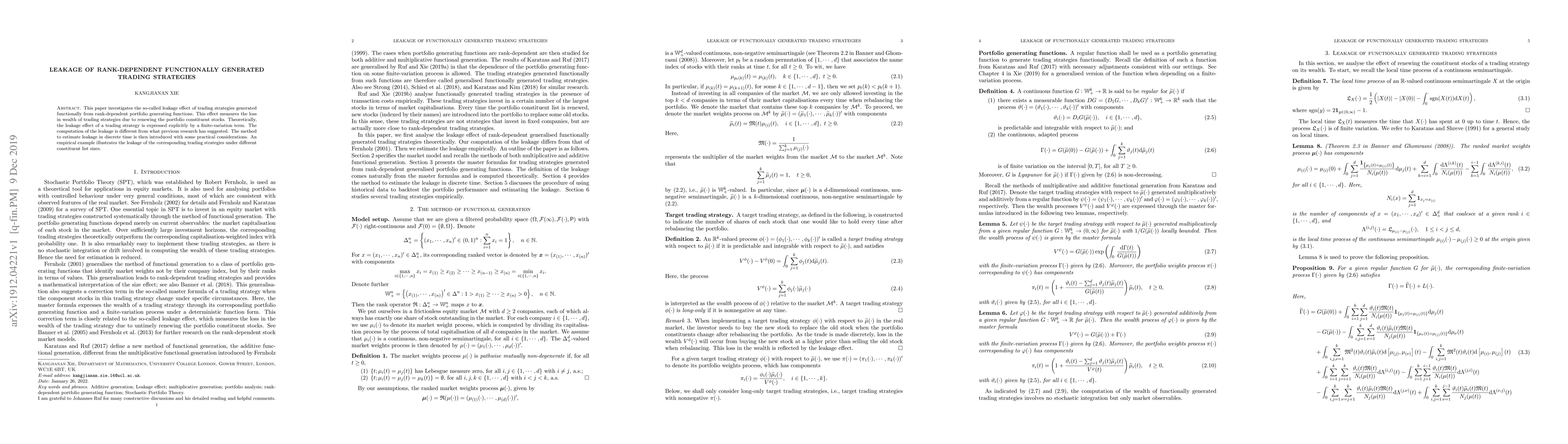 This paper investigates the so-called leakage effect of trading strategies generated functionally from rank-dependent portfolio generating functions. This effect measures the loss in wealth of trading strategies due to renewing the portfolio constituent stocks. Theoretically, the leakage effect of a trading strategy is expressed explicitly by a finite-variation term. The computation of the leakage is different from what previous research has suggested. The method to estimate leakage in discrete time is then introduced with some practical considerations. An empirical example illustrates the leakage of the corresponding trading strategies under different constituent list sizes.