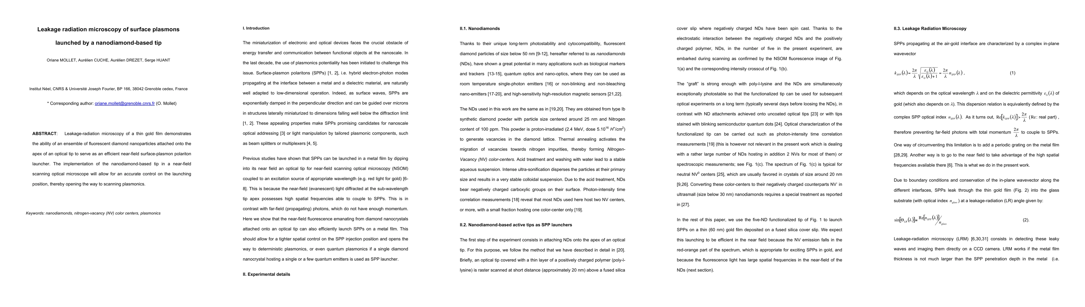 This research demonstrates the use of a nanodiamond-based tip with fluorescent diamond nanoparticles to efficiently launch surface plasmons in a thin gold film. The implementation in a near-field scanning optical microscope enables precise control over the launching position, paving the way for advanced scanning plasmonics.