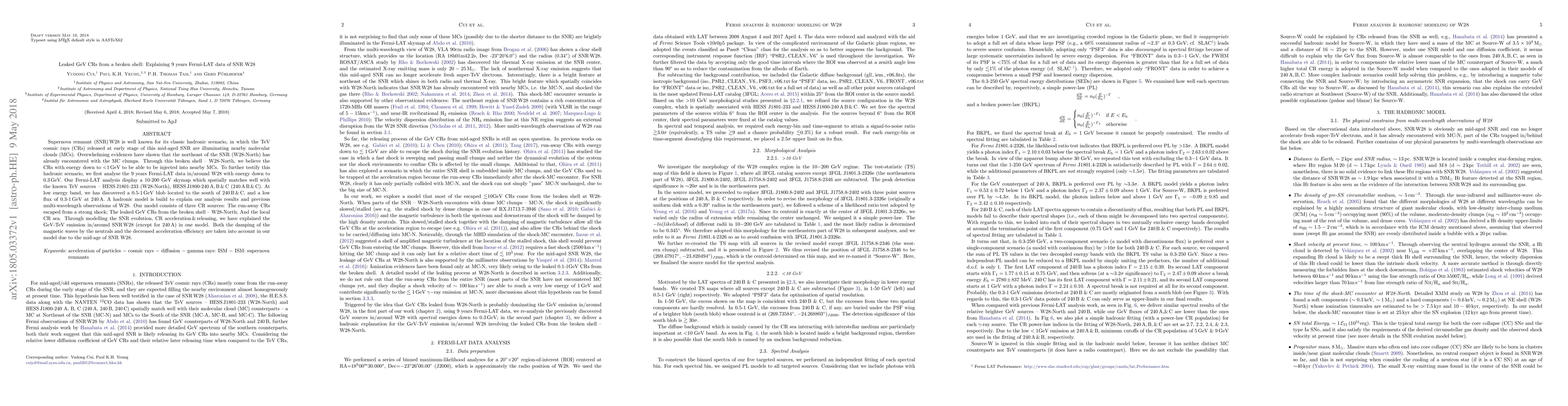 Supernova remnant (SNR)\,W28 is well known for its classic hadronic scenario, in which the TeV cosmic rays (CRs) released at the early stage of this mid-aged SNR are illuminating nearby molecular clouds (MCs). Overwhelming evidences have shown that the northeast of the SNR (W28-North) has already encountered with the MC clumps. Through this broken shell -- W28-North, we believe the CRs with energy down to $<$1\,GeV to be able to be injected into nearby MCs. To further testify this hadronic scenario, we first analyse the 9 years Fermi-LAT data in/around W28 with energy down to 0.3\,GeV. Our Fermi-LAT analysis display a 10-200 GeV skymap which spatially matches well with the known TeV sources -- HESS\,J1801-233 (W28-North), HESS\,J1800-240\,A,\,B\,\&\,C (240\,A\,B\,\&\,C). At low energy band, we has discovered a 0.5-1\,GeV blob located to the south of 240\,B\,\&\,C, and a low flux of 0.3-1\,GeV at 240\,A. A hadronic model is build to explain our analysis results and previous multi-wavelength observations of W28. Our model consists of three CR sources: The run-away CRs escaped from a strong shock; The leaked GeV CRs from the broken shell -- W28-North; And the local CR sea. Through modelling the SNR evolution, CR acceleration\,\&\,releasing, we have explained the GeV-TeV emission in/around SNR\,W28 (except for 240\,A) in one model. Both the damping of the magnetic waves by the neutrals and the decreased acceleration efficiency are taken into account in our model due to the mid-age of SNR W28.