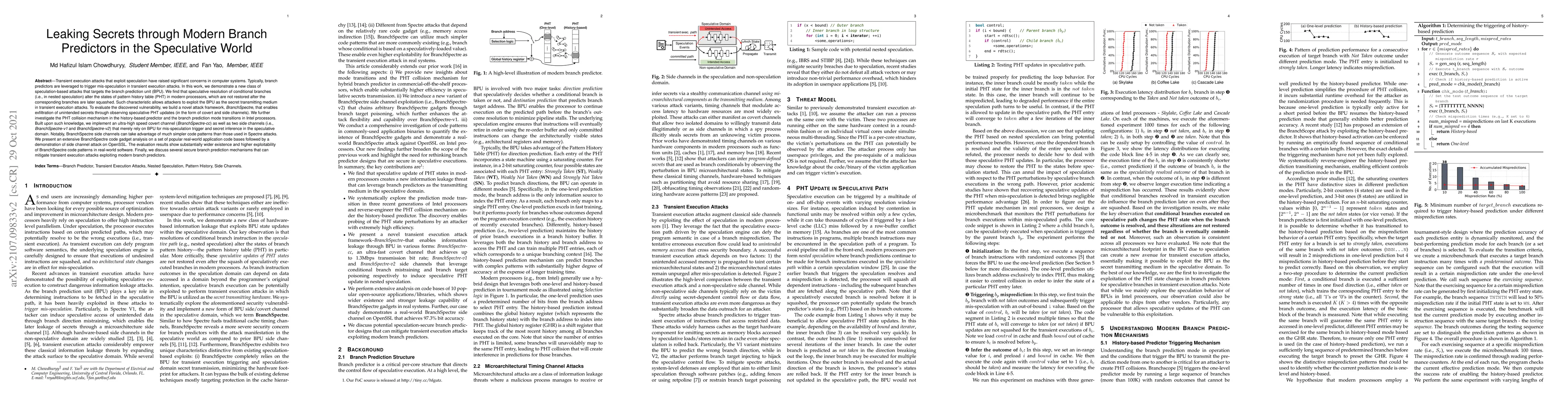 Transient execution attacks that exploit speculation have raised significant concerns in computer systems. Typically, branch predictors are leveraged to trigger mis-speculation in transient execution attacks. In this work, we demonstrate a new class of speculation-based attack that targets branch prediction unit (BPU). We find that speculative resolution of conditional branches (i.e., in nested speculation) alter the states of pattern history table (PHT) in modern processors, which are not restored after the corresponding branches are later squashed. Such characteristic allows attackers to exploit BPU as the secret transmitting medium in transient execution attacks. To evaluate the discovered vulnerability, we build a novel attack framework, BranchSpectre, that enables exfiltration of unintended secrets through observing speculative PHT updates (in the form of covert and side channels). We further investigate PHT collision mechanism in the history-based predictor as well as the branch prediction mode transitions in Intel processors. Built upon such knowledge, we implement an ultra high-speed covert channel (BranchSpectre-cc) as well as two side channels (i.e., BranchSpectre-v1 and BranchSpectre-v2) that merely rely on BPU for mis-speculation trigger and secret inference in the speculative domain. Notably, BranchSpectre side channels can take advantage of much simpler code patterns than the ones used in Spectre attacks. We present an extensive BranchSpectre code gadget analysis on a set of popular real-world application code bases followed by a demonstration of real-world side channel attack on OpenSSL. The evaluation results show substantial wider existence and higher exploitability of BranchSpectre code patterns in real-world software. Finally, we discuss several secure branch prediction mechanisms that can mitigate transient execution attacks exploiting modern branch predictors.
