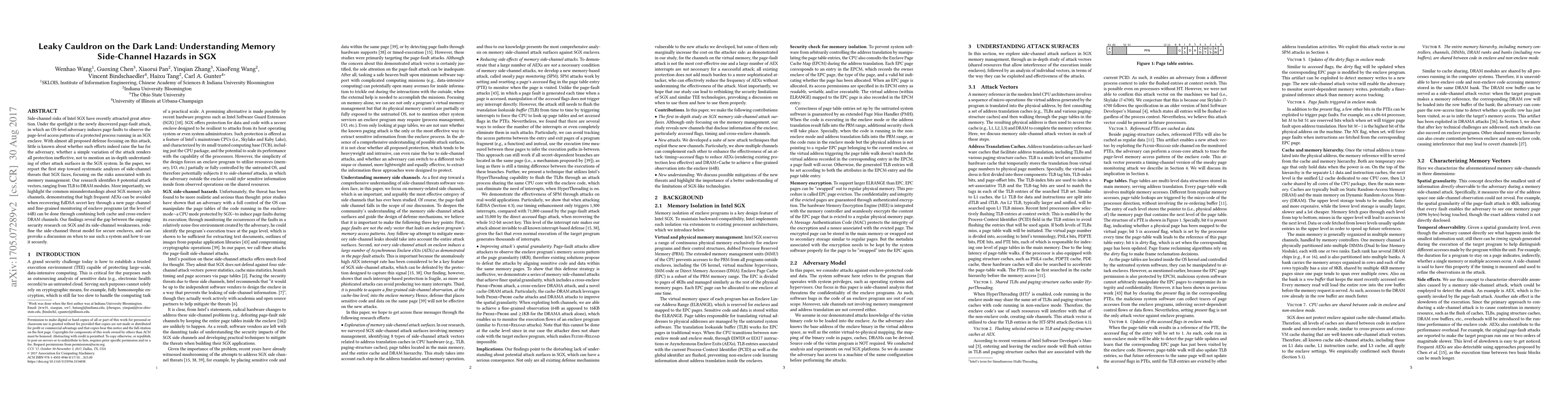 Researchers identified 8 potential attack vectors in Intel's SGX memory management, including TLB to DRAM modules, and found that high frequent page faults can be avoided with fine-grained monitoring of enclave programs.
