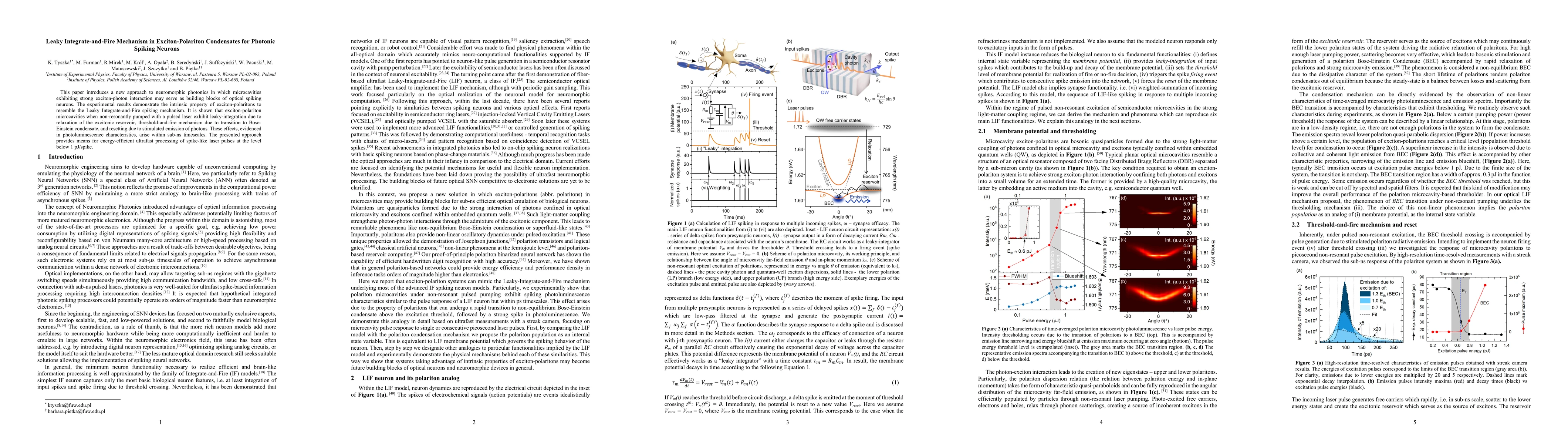 This paper proposes exciton-polariton condensates in microcavities as a novel platform for photonic spiking neurons, demonstrating their ability to emulate the Leaky Integrate-and-Fire mechanism through sub-ns timescale processes. The approach promises energy-efficient ultrafast processing with spike-like laser pulses at below 1 pJ/spike.