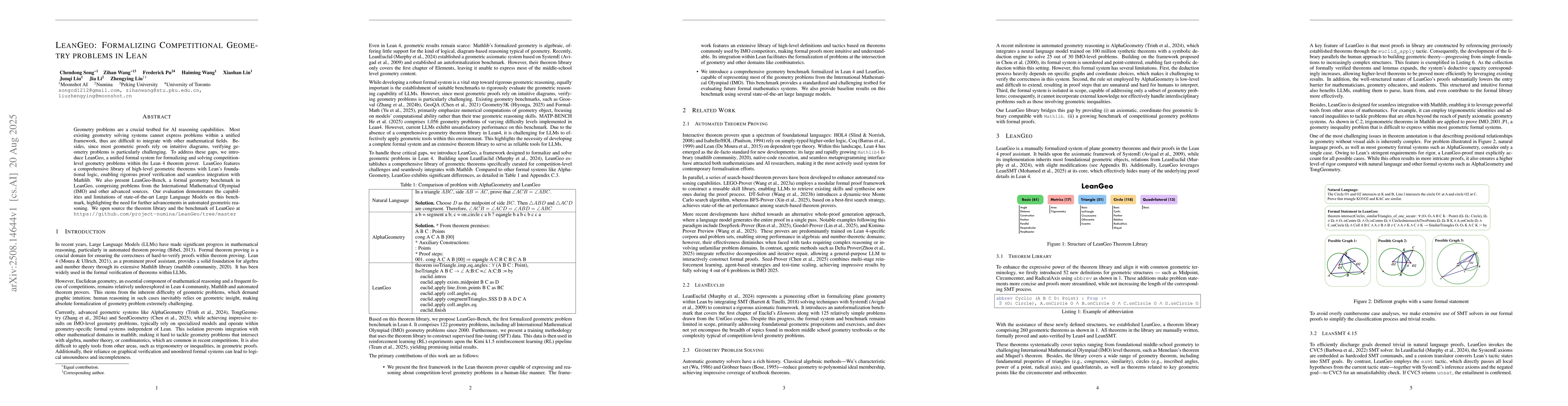 The research methodology involves formalizing competition-level geometry problems within the Lean 4 theorem prover, creating a unified framework called LeanGeo. This framework leverages Lean's foundational logic and integrates with Mathlib, providing a comprehensive library of high-level geometric theorems.
