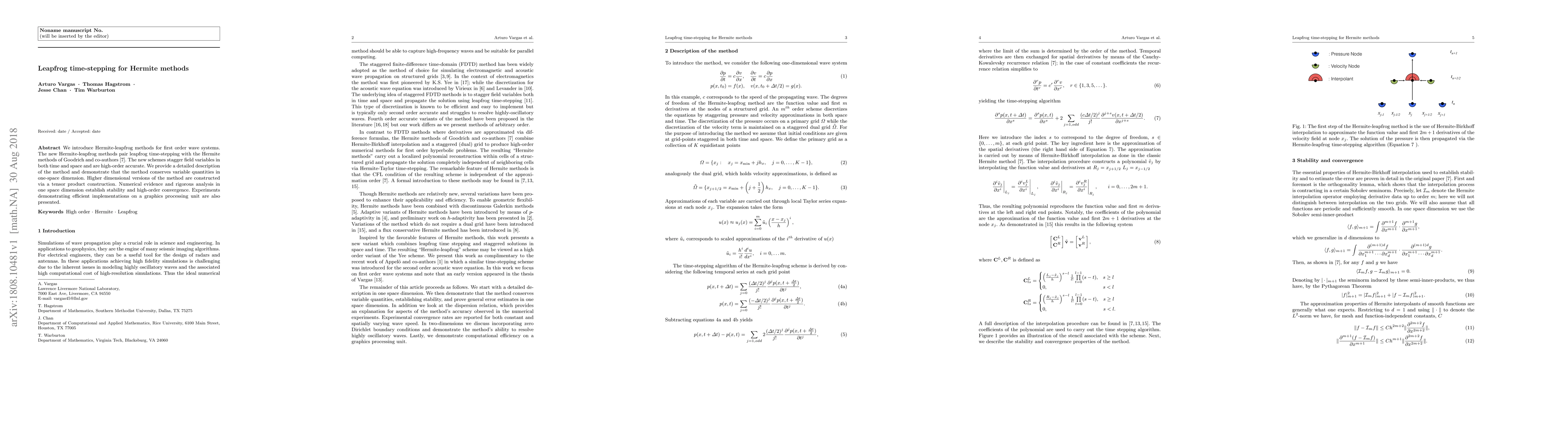 A new Hermite-leapfrog method is presented for simulating wave propagation, which combines the benefits of high-order accuracy and efficient time-stepping.