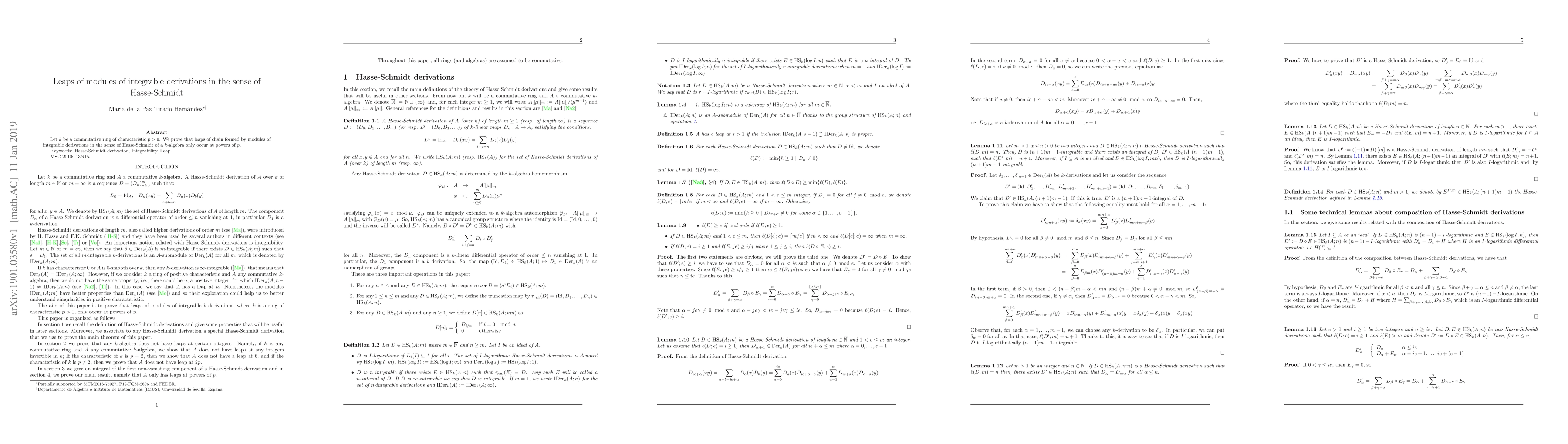 Let k be a commutative ring of characteristic p > 0. We prove that leaps of chain formed by modules of integrable derivations in the sense of Hasse-Schmidt of a k-algebra only occur at powers of p.