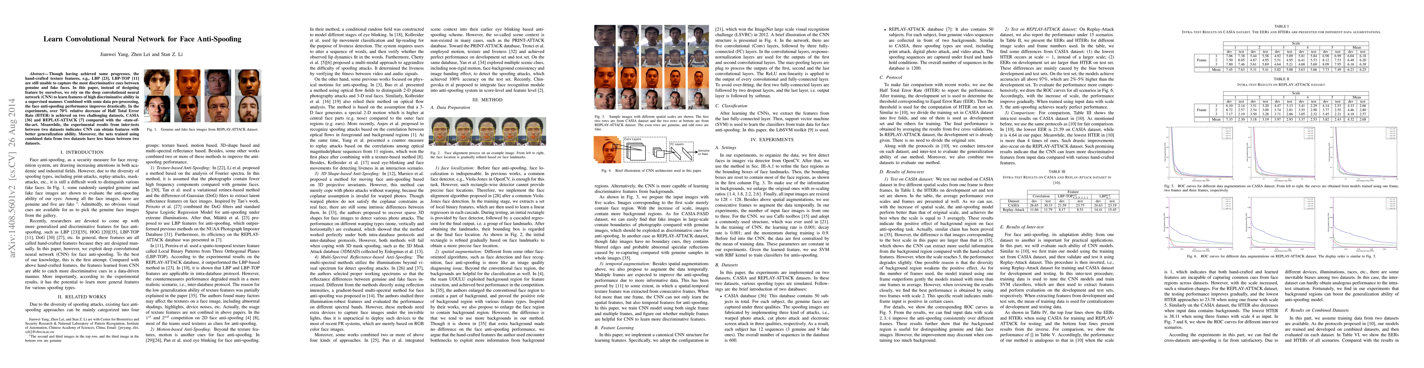 This paper proposes a deep convolutional neural network (CNN) approach for face anti-spoofing, achieving over 70% relative decrease in Half Total Error Rate (HTER) on two datasets. The CNN learns discriminative features in a supervised manner, demonstrating improved generalization and reduced bias compared to traditional methods.