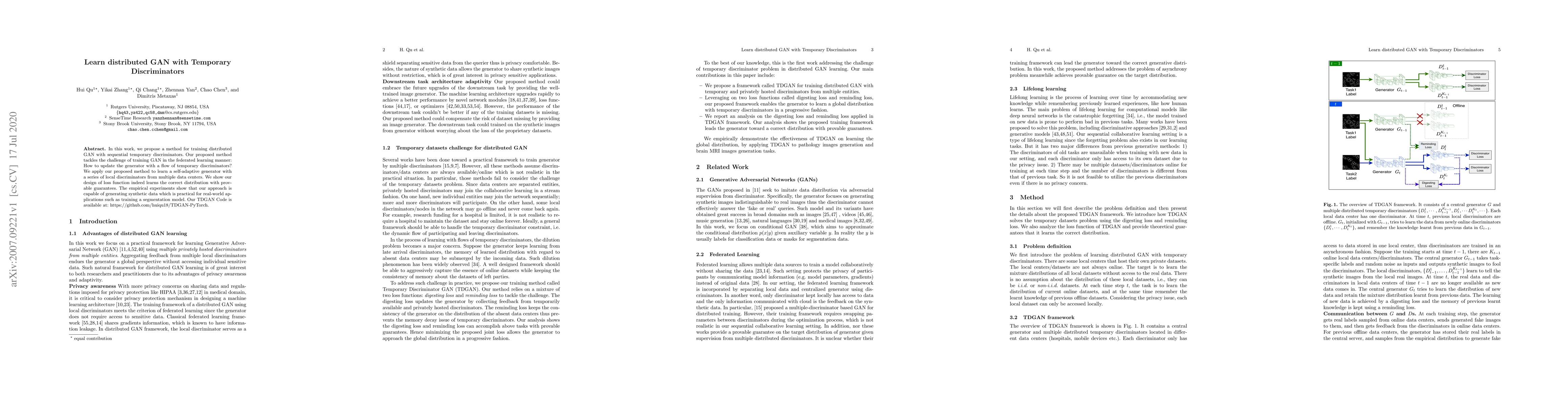 Researchers propose a new method to train Generative Adversarial Networks (GANs) in a distributed manner using temporary discriminators, enabling self-adaptive generators and practical real-world applications.