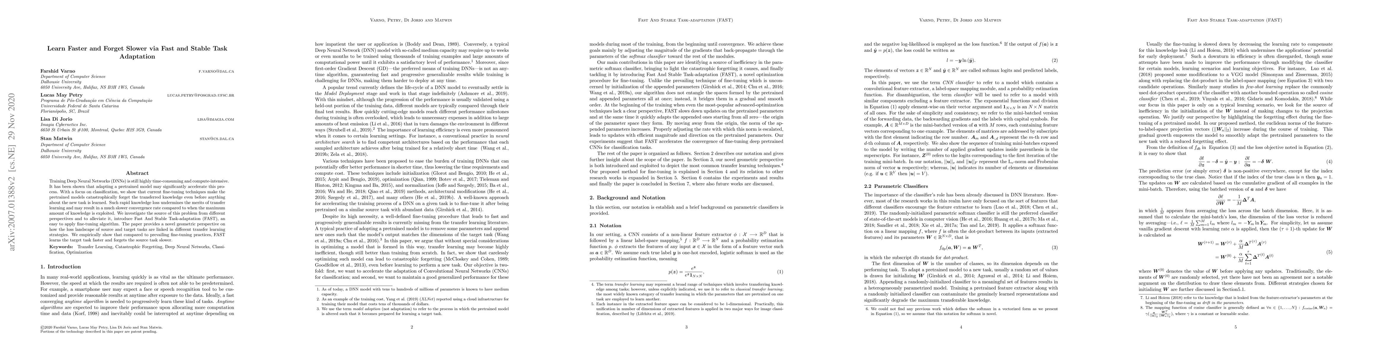 Training Deep Neural Networks (DNNs) is still highly time-consuming and compute-intensive. It has been shown that adapting a pretrained model may significantly accelerate this process. With a focus on classification, we show that current fine-tuning techniques make the pretrained models catastrophically forget the transferred knowledge even before anything about the new task is learned. Such rapid knowledge loss undermines the merits of transfer learning and may result in a much slower convergence rate compared to when the maximum amount of knowledge is exploited. We investigate the source of this problem from different perspectives and to alleviate it, introduce Fast And Stable Task-adaptation (FAST), an easy to apply fine-tuning algorithm. The paper provides a novel geometric perspective on how the loss landscape of source and target tasks are linked in different transfer learning strategies. We empirically show that compared to prevailing fine-tuning practices, FAST learns the target task faster and forgets the source task slower.