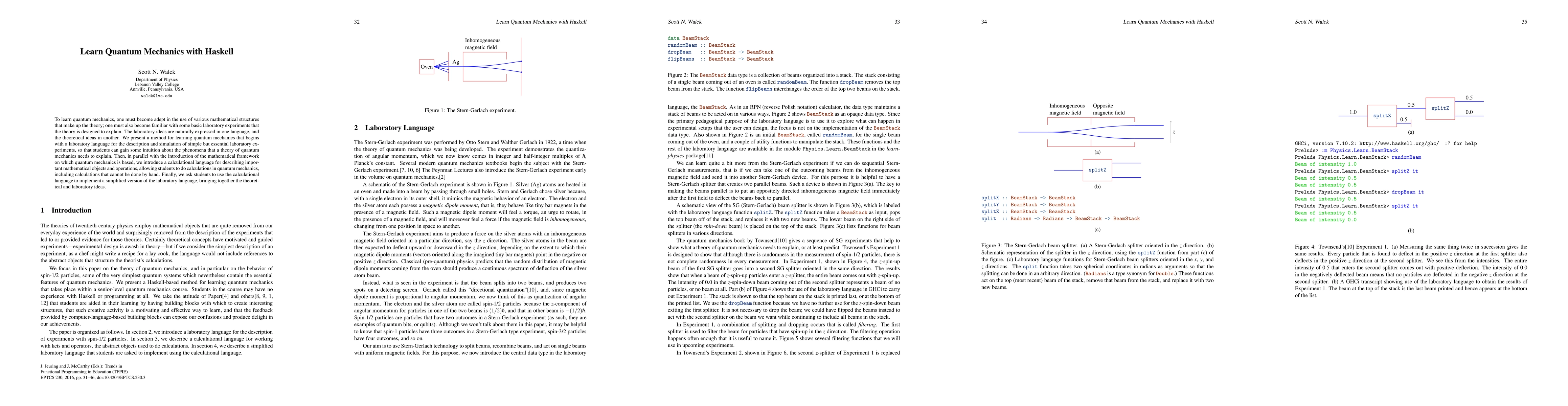 This paper proposes a method for teaching quantum mechanics using Haskell, starting with a laboratory language to simulate experiments and build intuition, followed by introducing mathematical structures and operations in Haskell for computational calculations, culminating in students implementing a simplified lab language in Haskell.