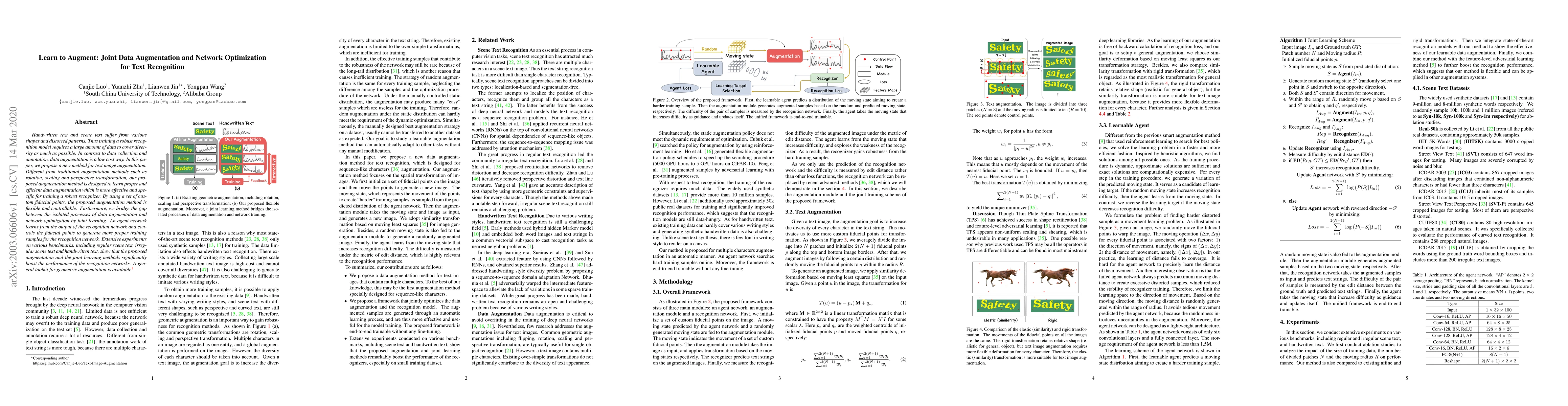 This paper proposes a novel joint data augmentation and network optimization method for text recognition, utilizing custom fiducial points to generate more effective training samples. By integrating augmentation learning with network training, the method significantly improves recognition performance on various text datasets.