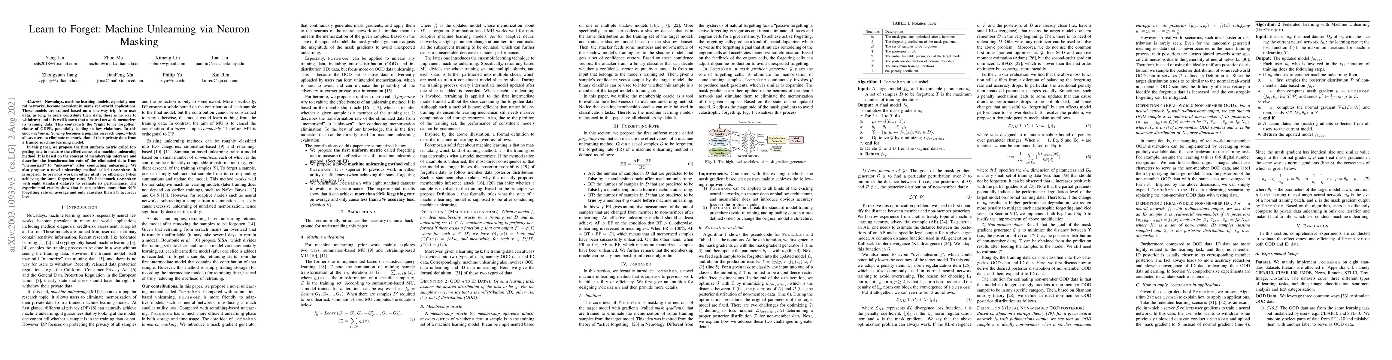 Nowadays, machine learning models, especially neural networks, become prevalent in many real-world applications.These models are trained based on a one-way trip from user data: as long as users contribute their data, there is no way to withdraw; and it is well-known that a neural network memorizes its training data. This contradicts the "right to be forgotten" clause of GDPR, potentially leading to law violations. To this end, machine unlearning becomes a popular research topic, which allows users to eliminate memorization of their private data from a trained machine learning model.In this paper, we propose the first uniform metric called for-getting rate to measure the effectiveness of a machine unlearning method. It is based on the concept of membership inference and describes the transformation rate of the eliminated data from "memorized" to "unknown" after conducting unlearning. We also propose a novel unlearning method calledForsaken. It is superior to previous work in either utility or efficiency (when achieving the same forgetting rate). We benchmark Forsaken with eight standard datasets to evaluate its performance. The experimental results show that it can achieve more than 90\% forgetting rate on average and only causeless than 5\% accuracy loss.