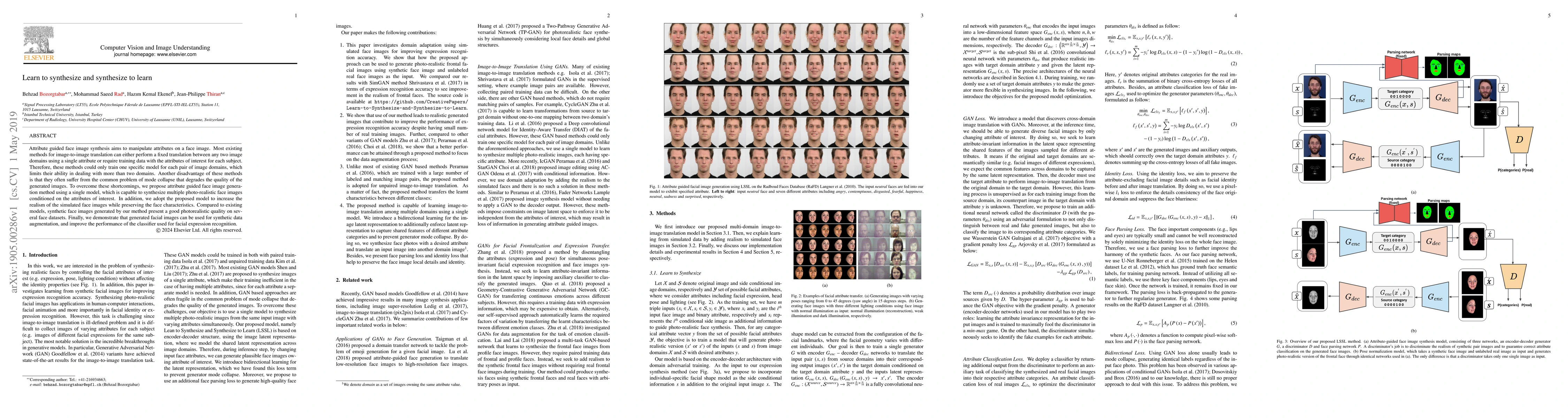This paper proposes a single-model approach for attribute-guided face image synthesis that can handle multiple image domains and avoid mode collapse, generating high-quality, photorealistic face images. The method also enhances synthetic data augmentation for improving facial expression recognition classifiers.