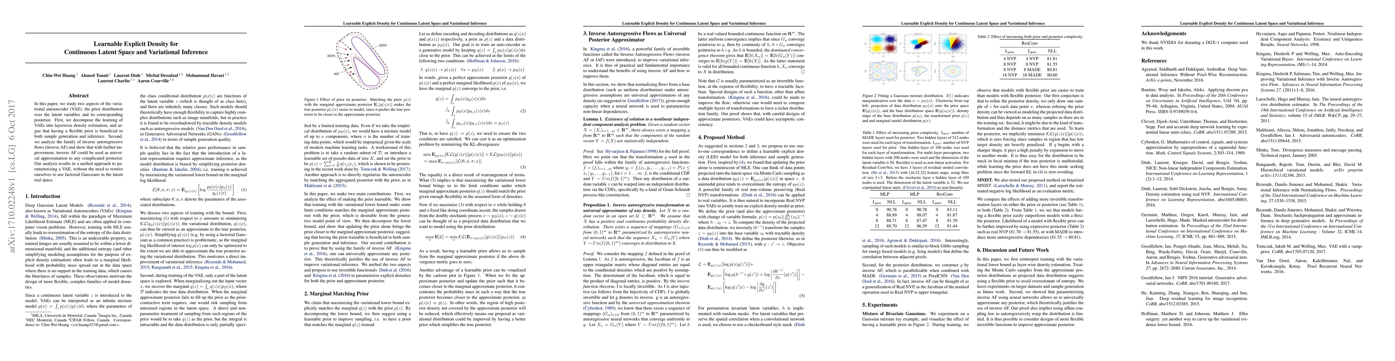 In this paper, we study two aspects of the variational autoencoder (VAE): the prior distribution over the latent variables and its corresponding posterior. First, we decompose the learning of VAEs into layerwise density estimation, and argue that having a flexible prior is beneficial to both sample generation and inference. Second, we analyze the family of inverse autoregressive flows (inverse AF) and show that with further improvement, inverse AF could be used as universal approximation to any complicated posterior. Our analysis results in a unified approach to parameterizing a VAE, without the need to restrict ourselves to use factorial Gaussians in the latent real space.