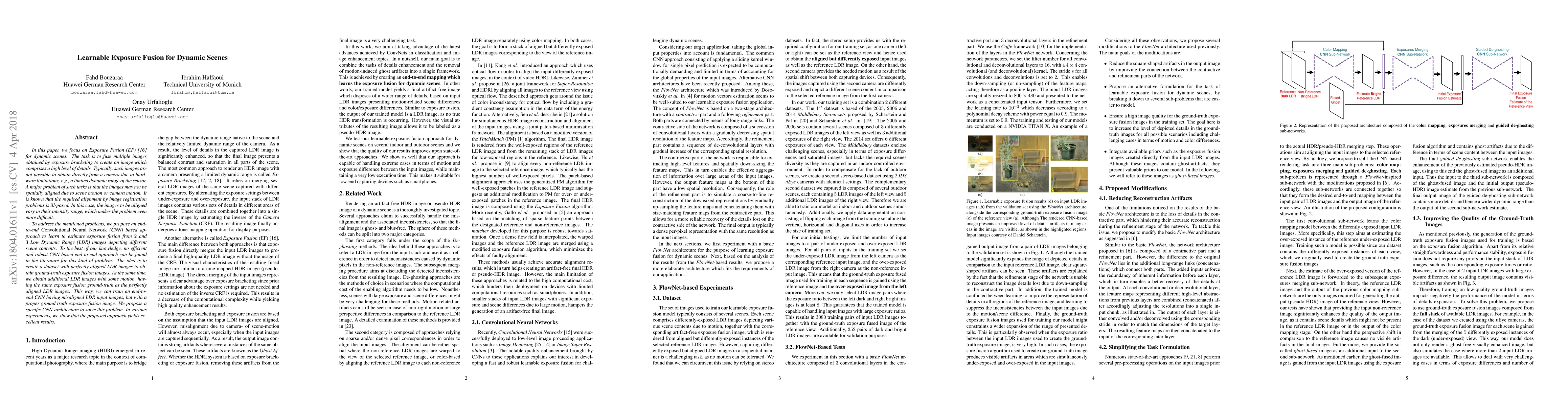 This paper proposes a Convolutional Neural Network (CNN) based approach for learning exposure fusion in dynamic scenes, addressing the challenge of aligning misaligned images due to motion. The method trains an end-to-end CNN using a dataset of both perfectly aligned and misaligned Low Dynamic Range images with the same ground-truth exposure fusion, demonstrating superior performance in experiments.
