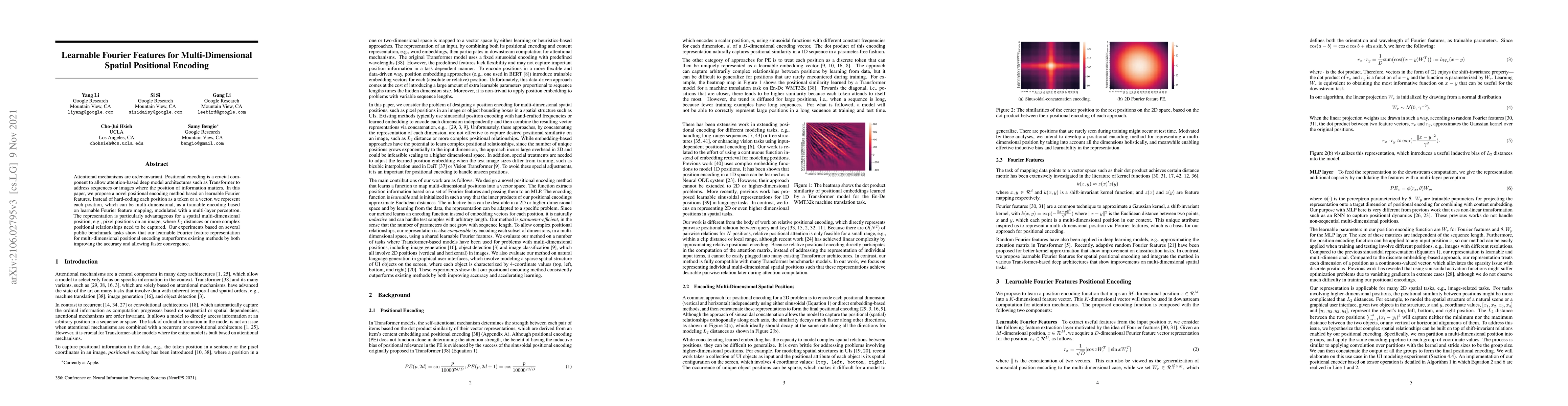 This paper proposes a novel learnable Fourier feature method for multi-dimensional positional encoding, which enhances Transformer models' ability to handle spatial information. The approach outperforms existing methods by improving accuracy and enabling faster convergence on benchmark tasks.