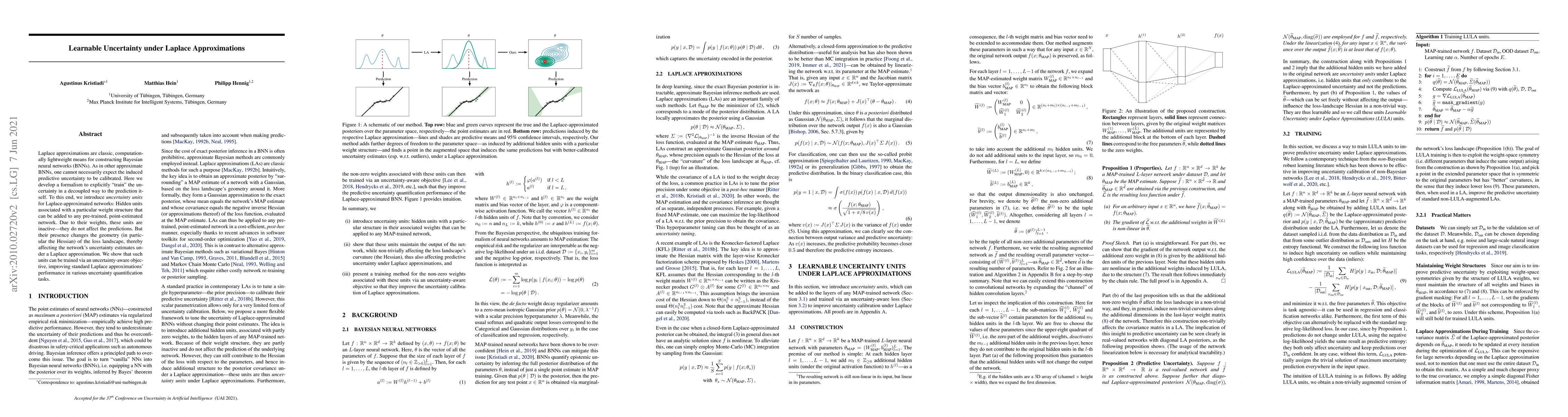 Laplace approximations are classic, computationally lightweight means for constructing Bayesian neural networks (BNNs). As in other approximate BNNs, one cannot necessarily expect the induced predictive uncertainty to be calibrated. Here we develop a formalism to explicitly "train" the uncertainty in a decoupled way to the prediction itself. To this end, we introduce uncertainty units for Laplace-approximated networks: Hidden units associated with a particular weight structure that can be added to any pre-trained, point-estimated network. Due to their weights, these units are inactive -- they do not affect the predictions. But their presence changes the geometry (in particular the Hessian) of the loss landscape, thereby affecting the network's uncertainty estimates under a Laplace approximation. We show that such units can be trained via an uncertainty-aware objective, improving standard Laplace approximations' performance in various uncertainty quantification tasks.
