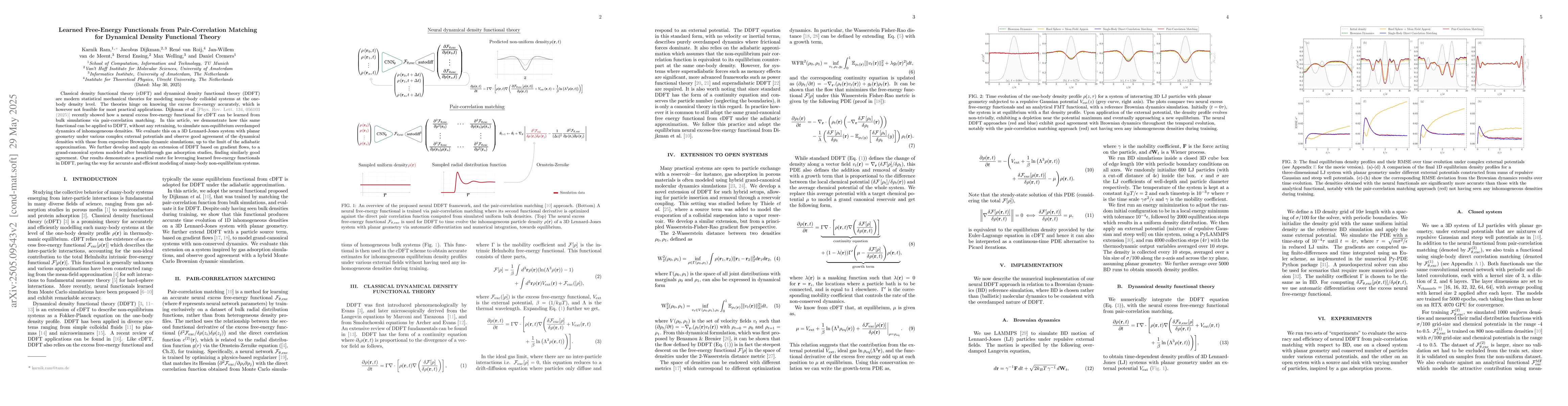 Researchers demonstrate a method to apply learned free-energy functionals from pair-correlation matching to dynamical density functional theory, achieving good agreement with expensive simulations in non-equilibrium systems.