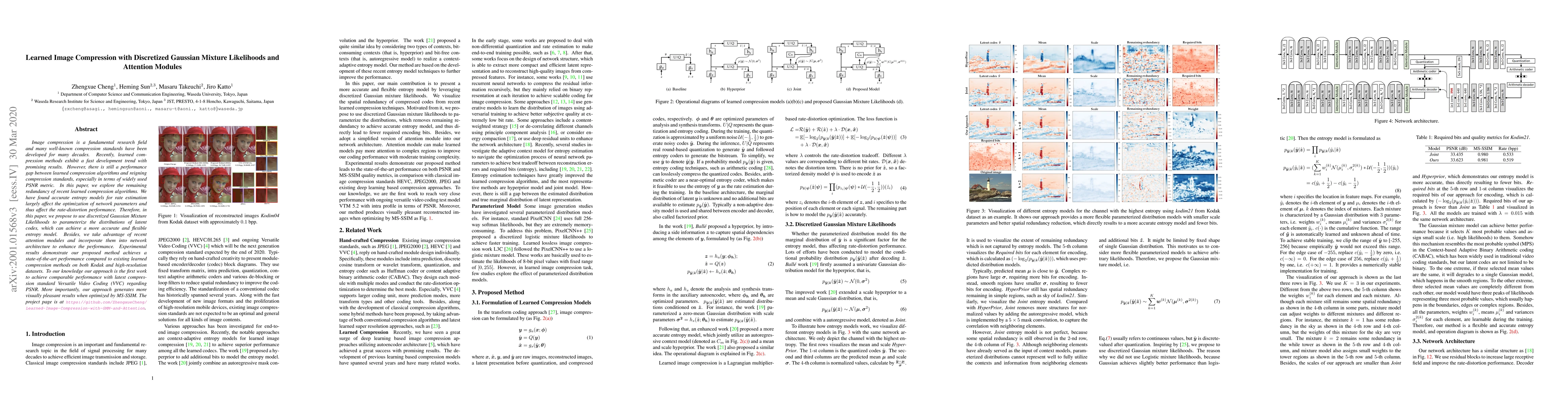 This paper proposes a novel learned image compression method using discretized Gaussian Mixture Likelihoods for more accurate entropy modeling and attention modules to enhance performance. The method achieves state-of-the-art results, matching the performance of the latest compression standard Versatile Video Coding (VVC) in terms of PSNR and generating more visually pleasing results when optimized by MS-SSIM.