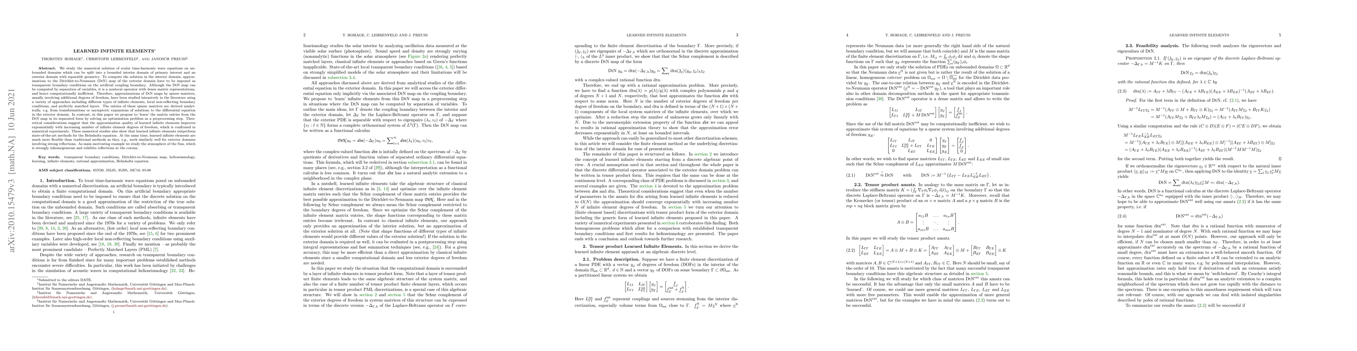 This paper proposes a novel method to approximate the Dirichlet-to-Neumann map for solving time-harmonic wave equations on unbounded domains using learned infinite elements, which outperform traditional methods and are more flexible for complex geometries.